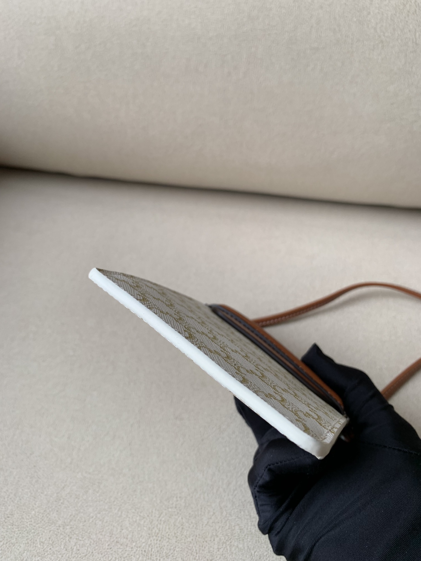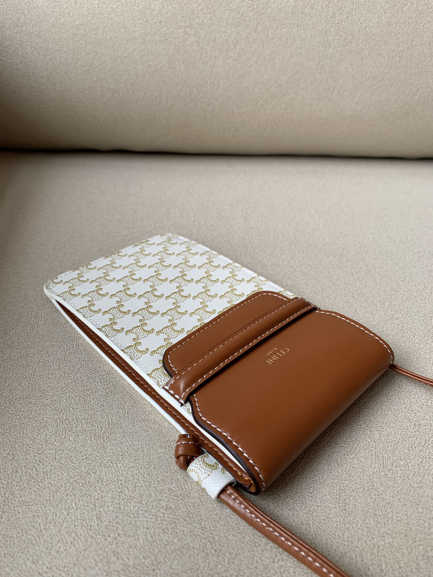 1:1 Replica Celine Phone Pouch With Flap In Triomphe Canvas And Lambskin White/Tan For Women 7in/18cm 10G332CQD.01TA