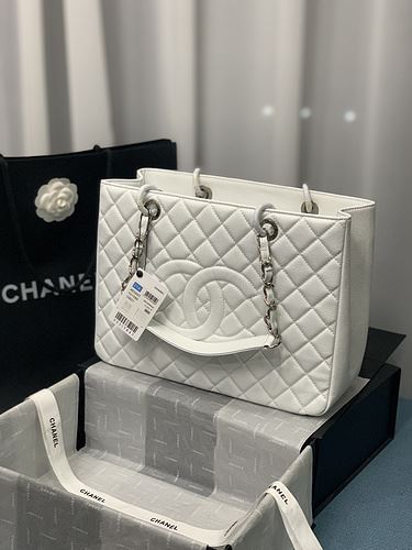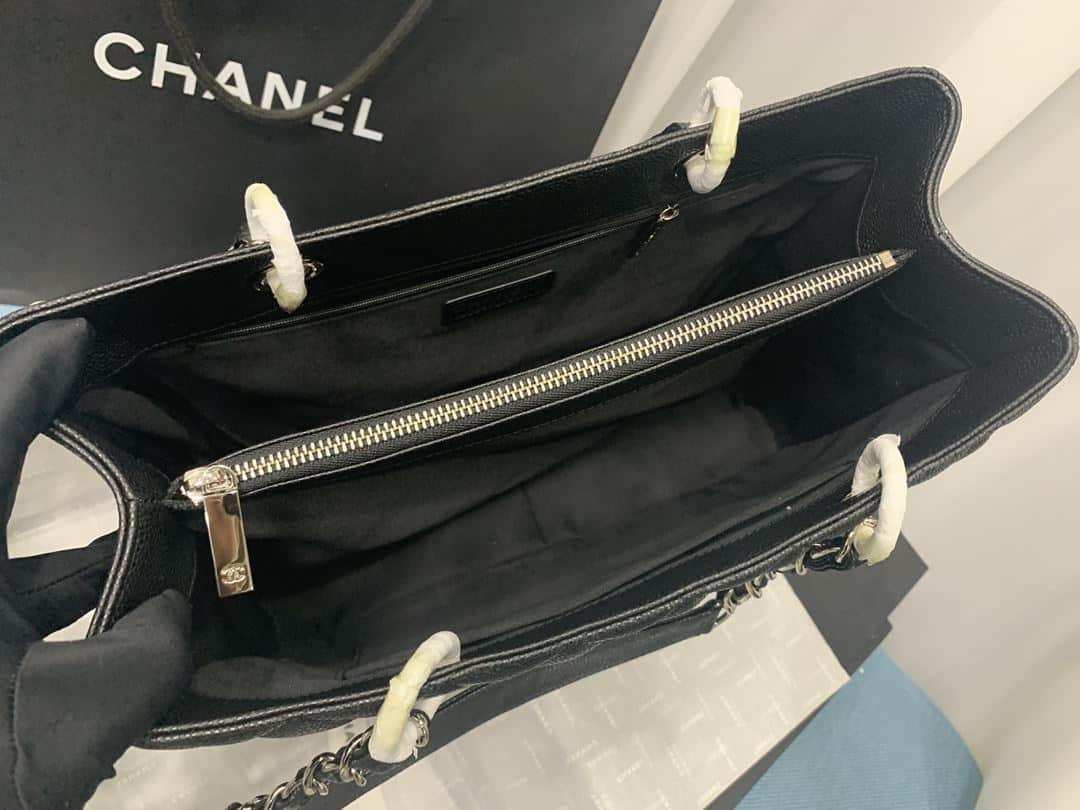 Chanel Chain Tote Shoulder Bag Black/White – A50995