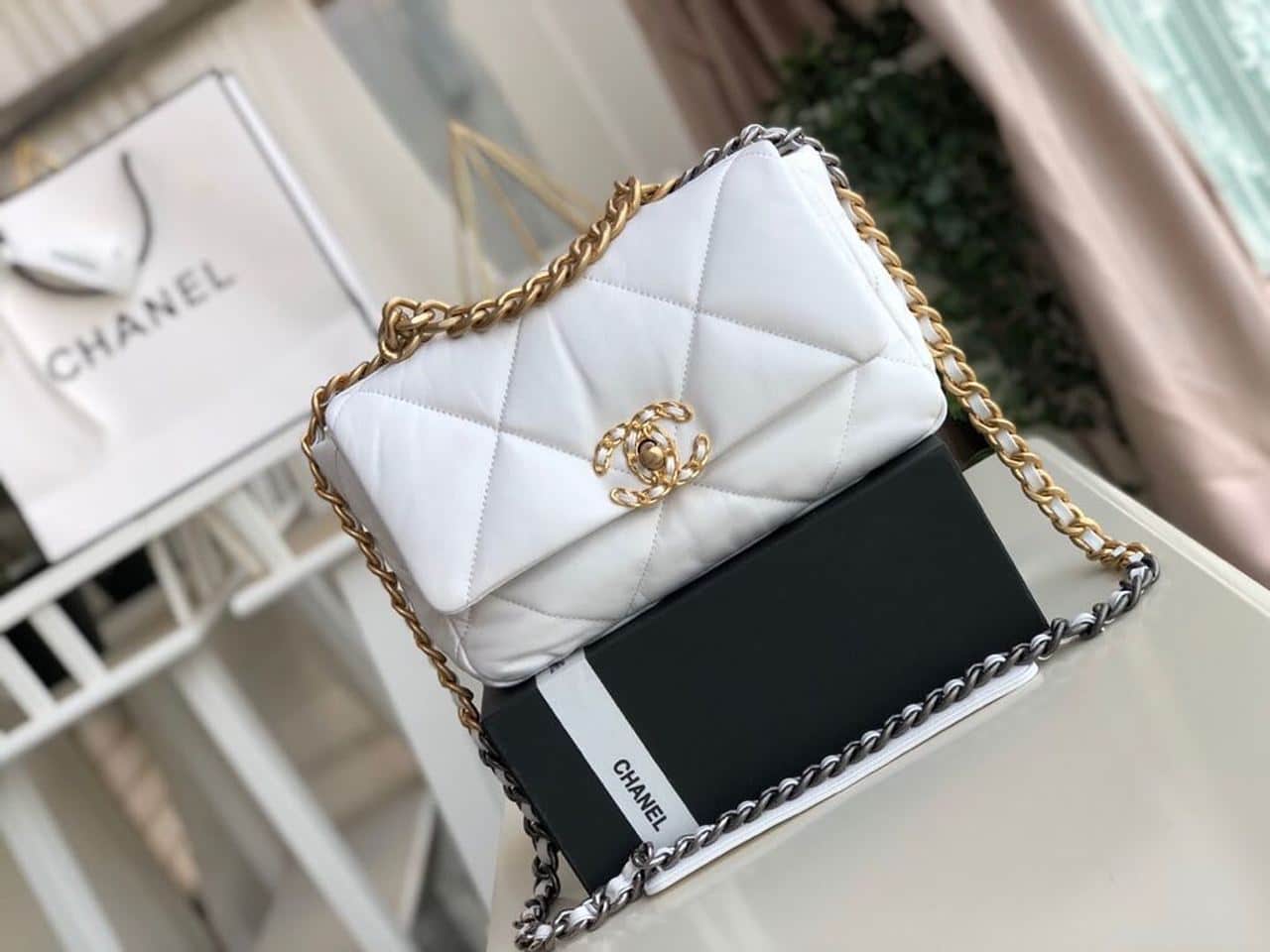 Chanel 19 HandBag White For Women 10.1in/26cm AS1160
