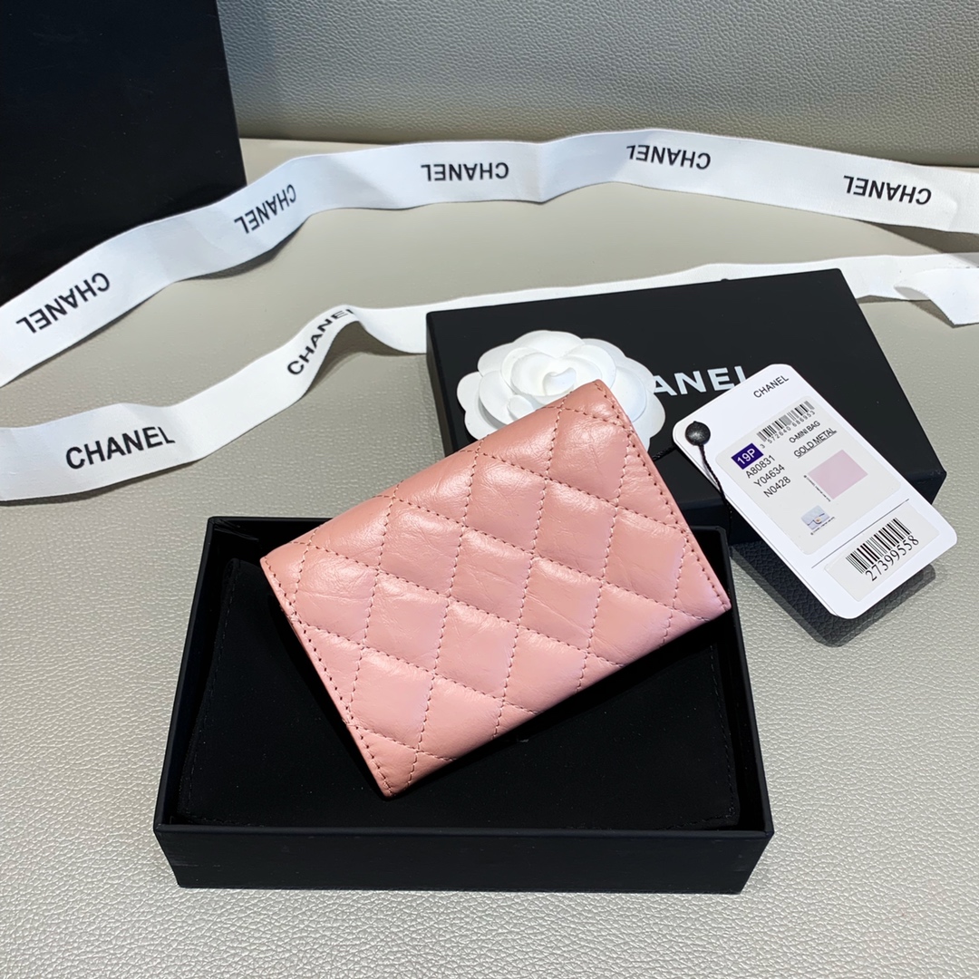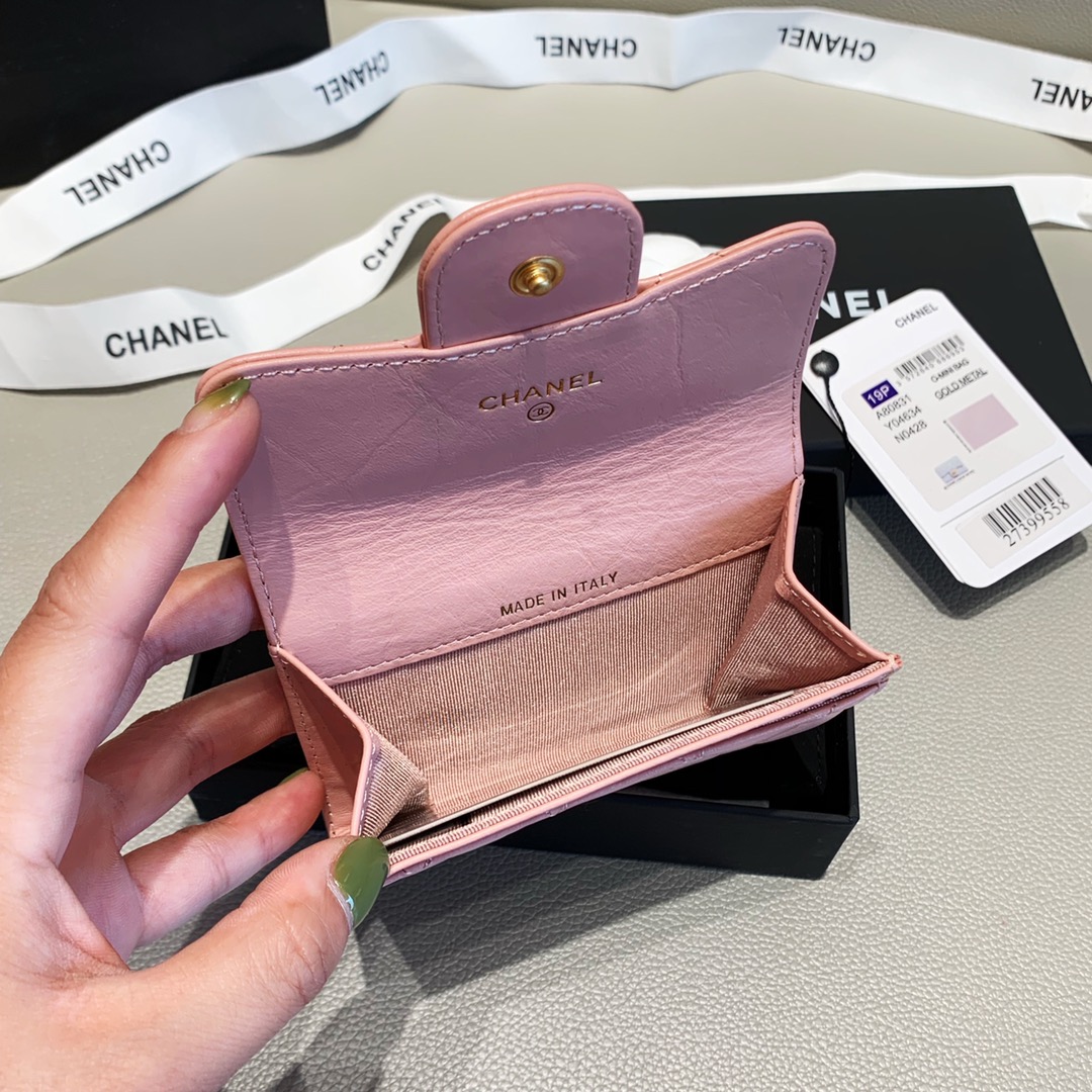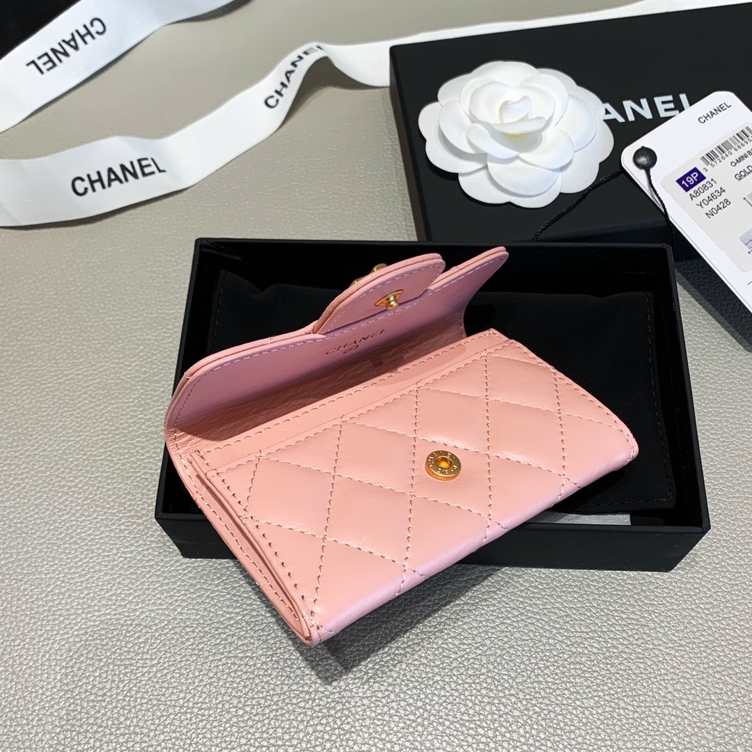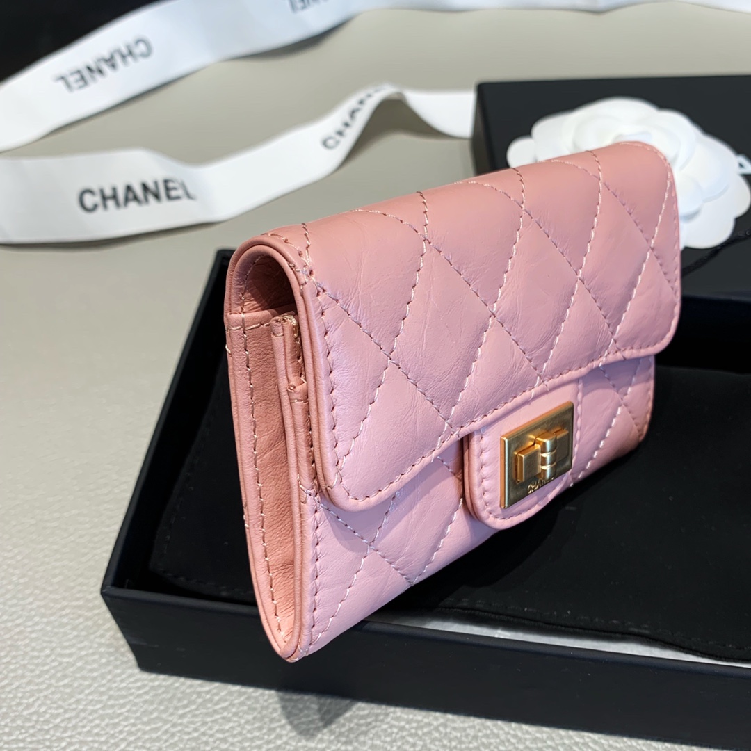 Chanel 2.55 Flap Card Holder 4.4in/11cm Gold Toned Hardware For Women Light Pink A80831