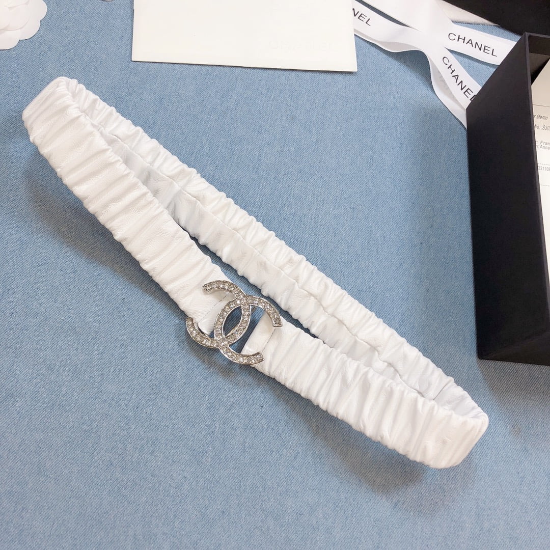 Chanel Belt Double C Buckle White Silver-Toned Hardware and Strass Women Belt