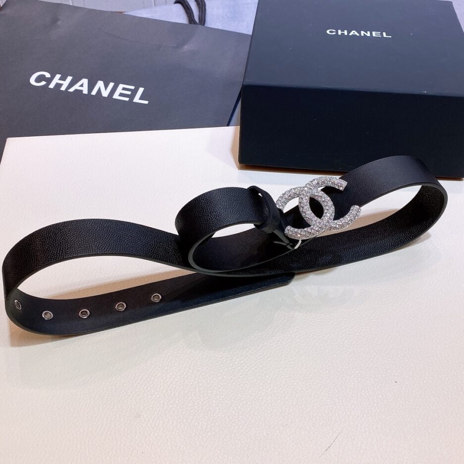 Chanel Belt With Beaded Buckle Black with Silver Hardware Women Belt