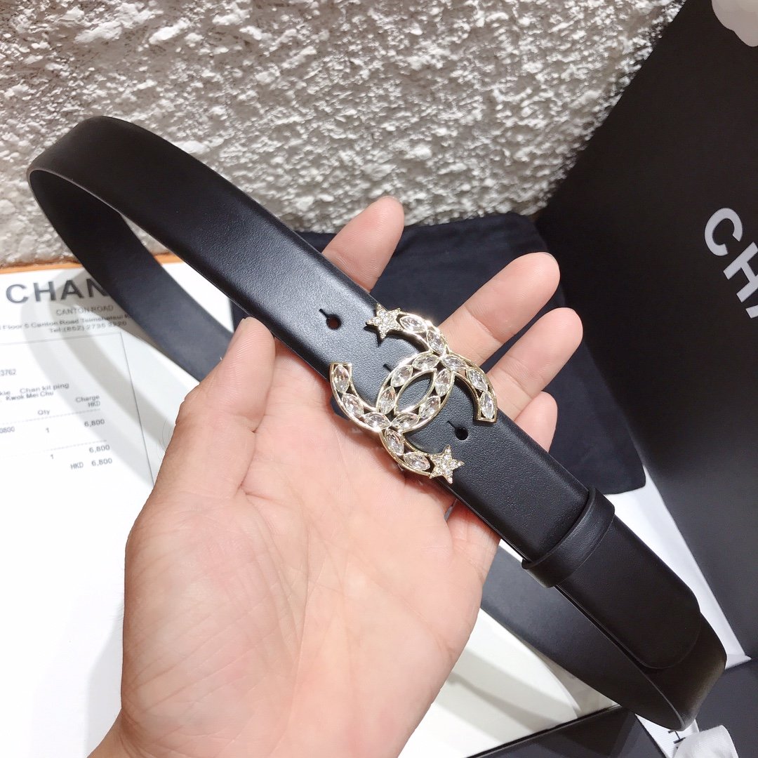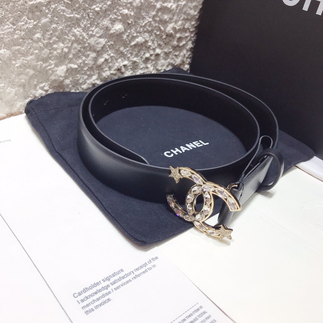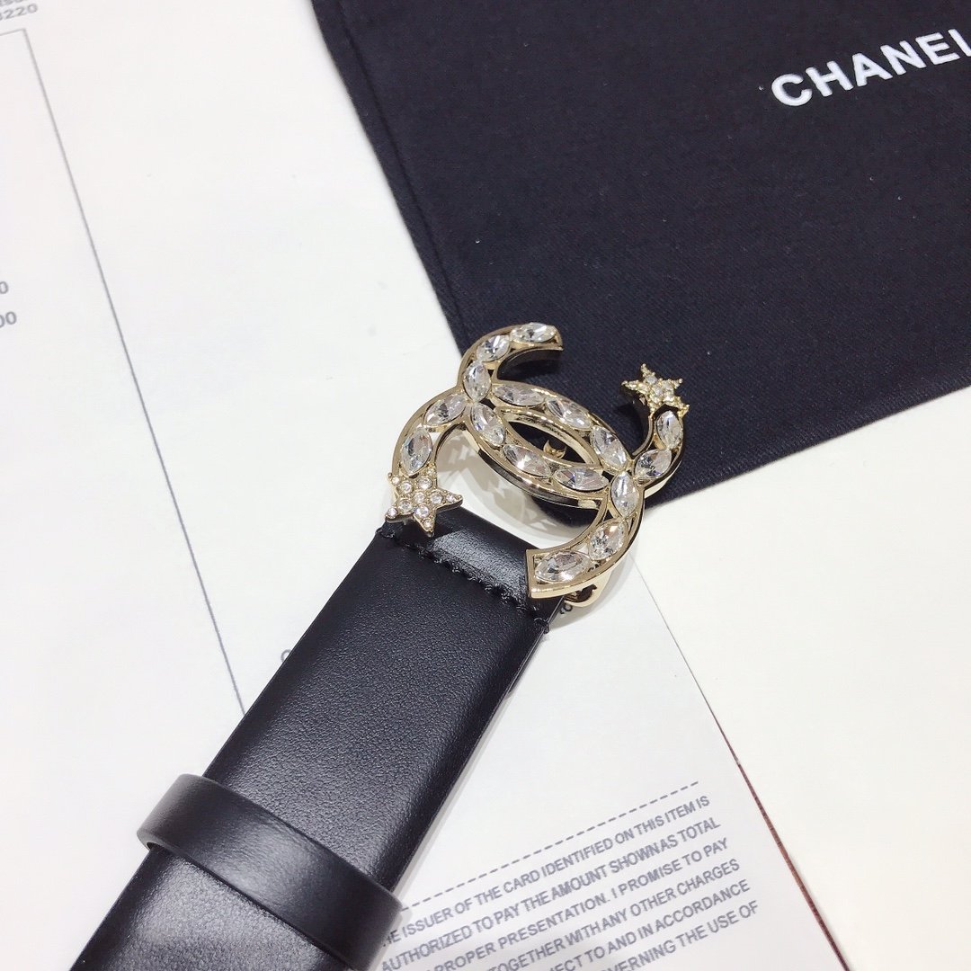 Chanel Belt With Double C Buckle Black With Star-Silver-Toned Hardware Women Belt