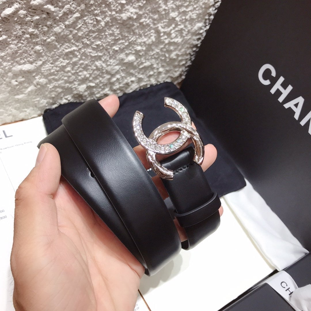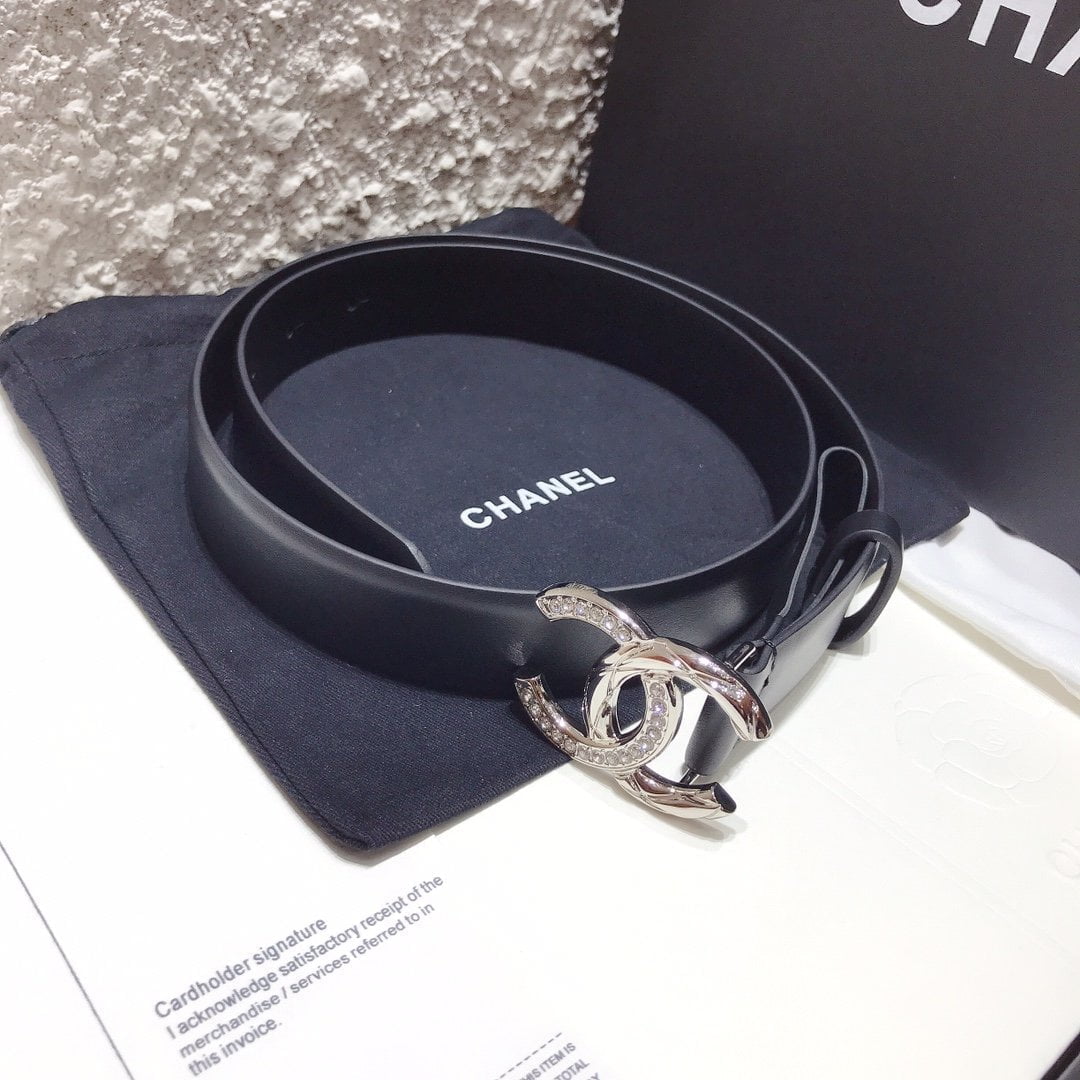Chanel Black Belt With Double C Buckle Silver-Toned Metal Women Belt
