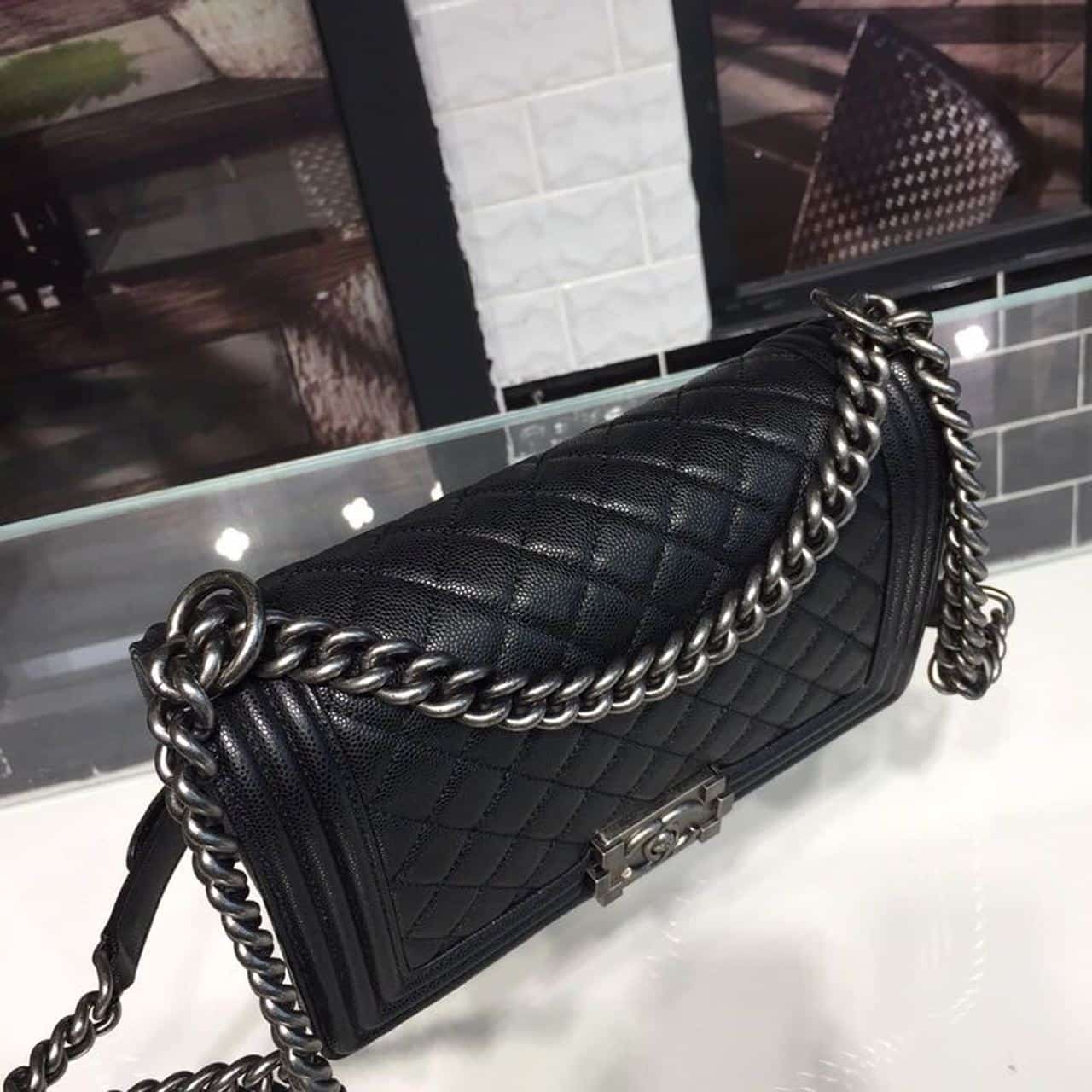 Chanel Boy Handbag Silver Hardware Black For Women, Women’s Handbags, Shoulder And Crossbody Bags 9.8in/25cm A67086