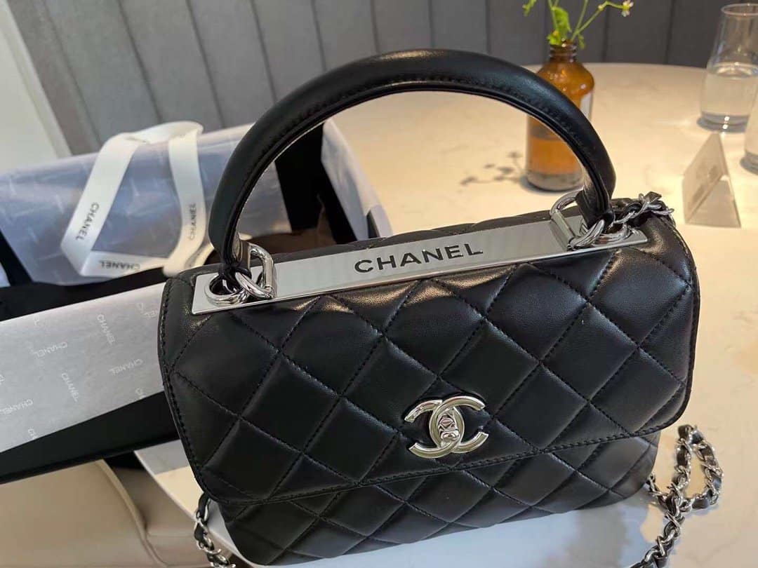 Chanel Classic Flap Bag Silver Hardware Black 9.8in/25cm