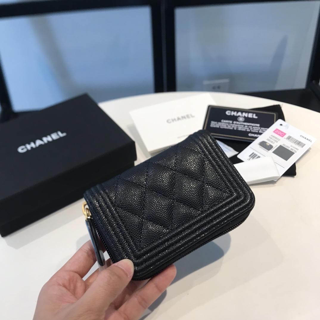 Chanel CO-CO Boy Flap Card Holder 11.5cm/4.5in Gold Hardware For Women Black A80603 Y07659 94305