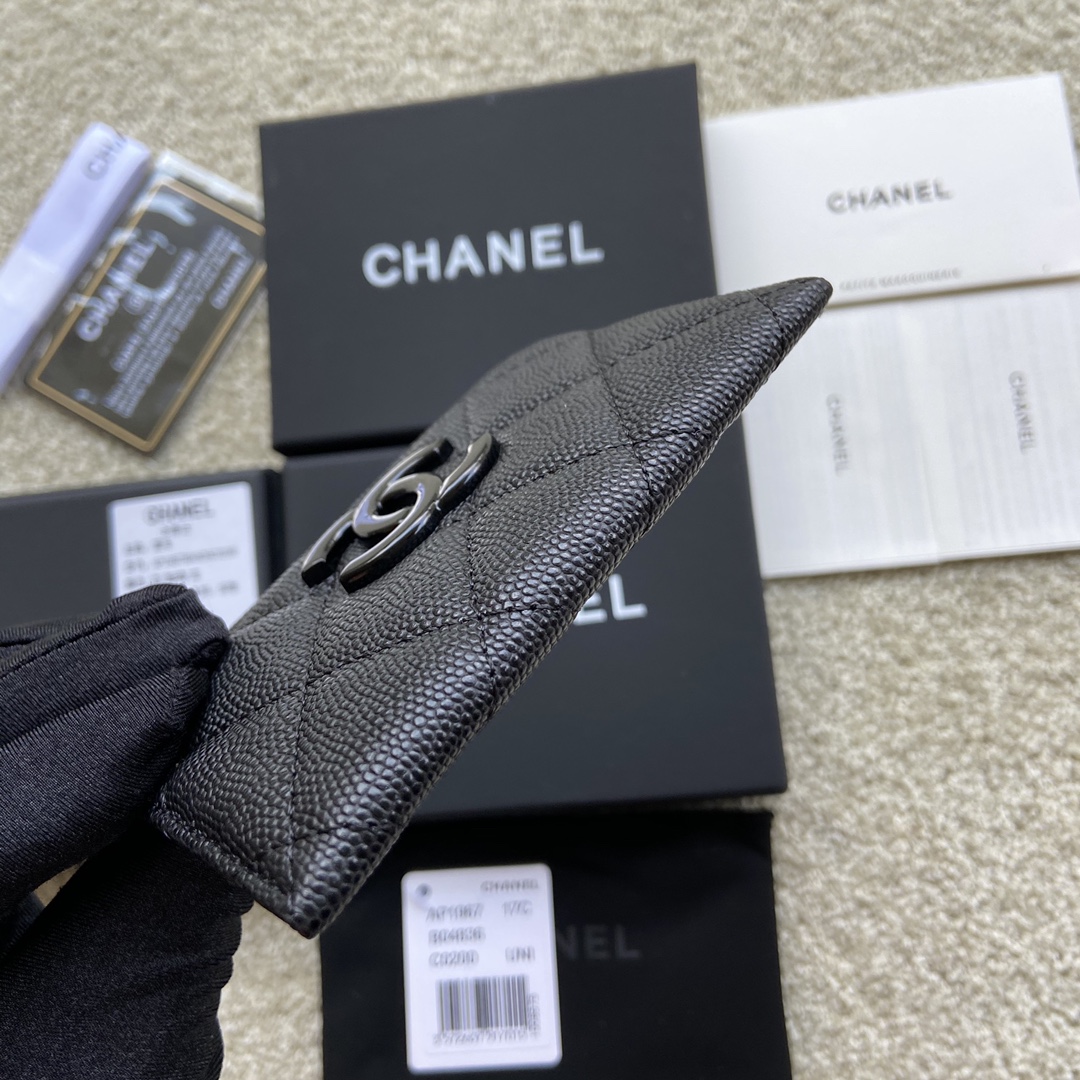 Chanel CO-CO Card Holder 11cm/4.3in Black Hardware For Women Black