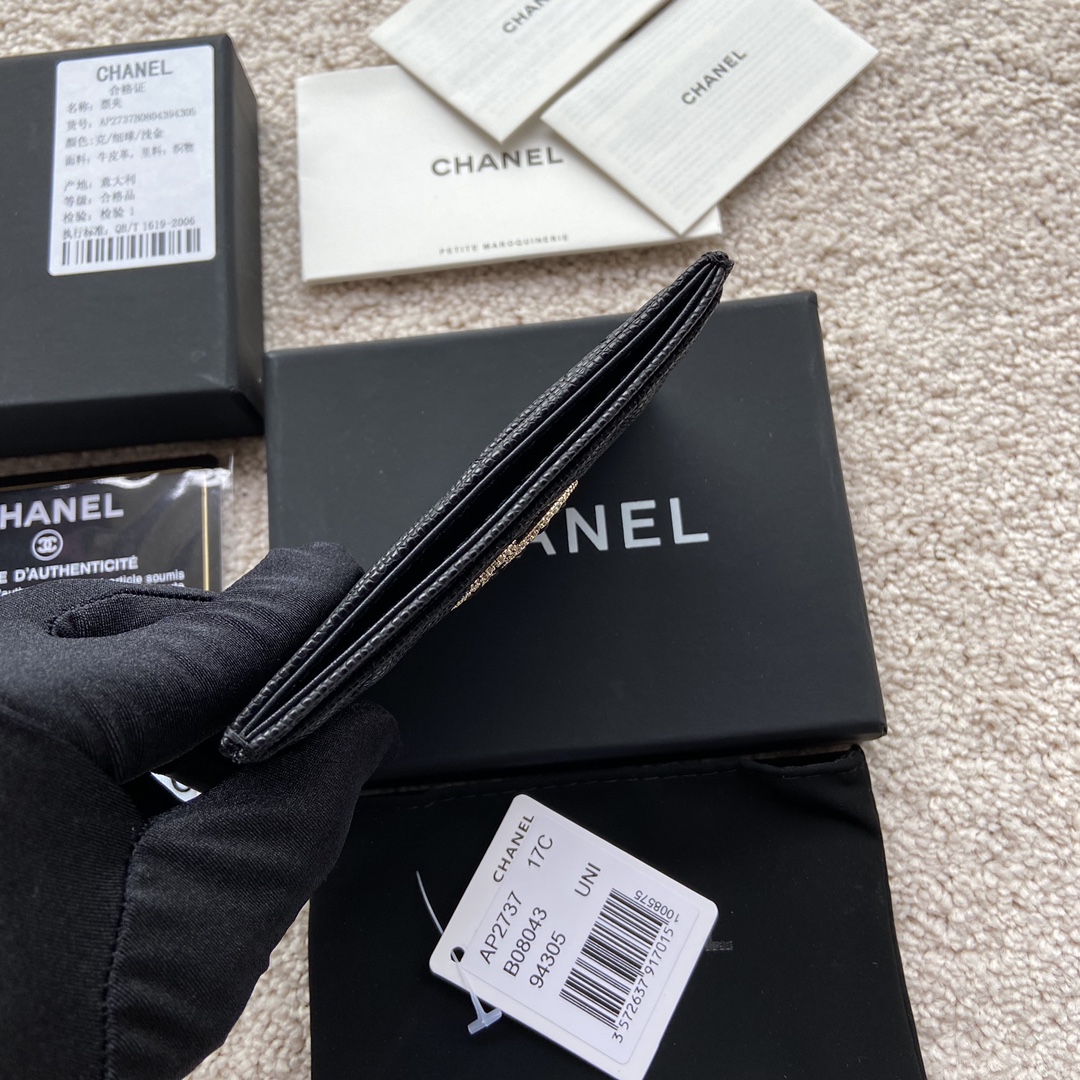 Chanel CO-CO Card Holder 11cm/4.3in Silver Hardware For Women Black