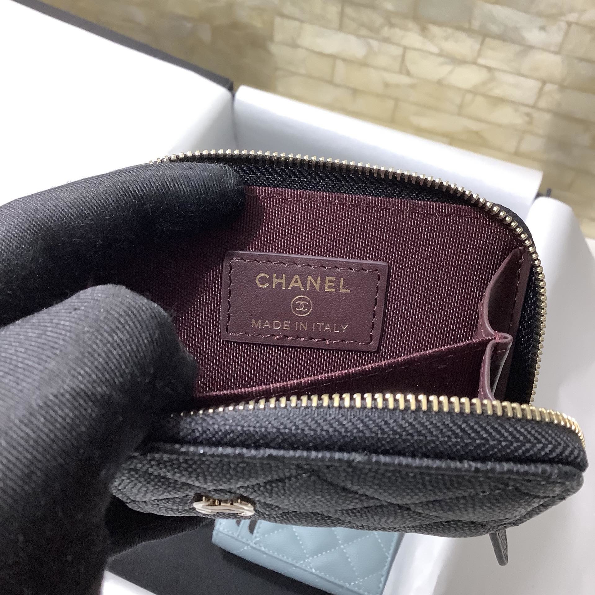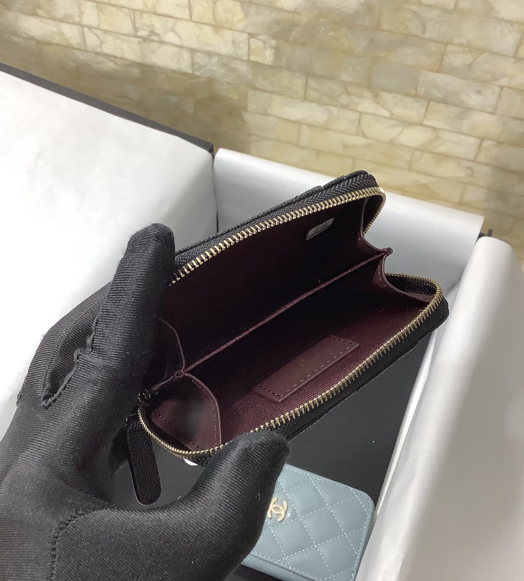 1:1 Replica Chanel CO-CO Boy Chanel Zipped Coin Purse 11cm/4.3in Gold Toned Hardware For Women Black