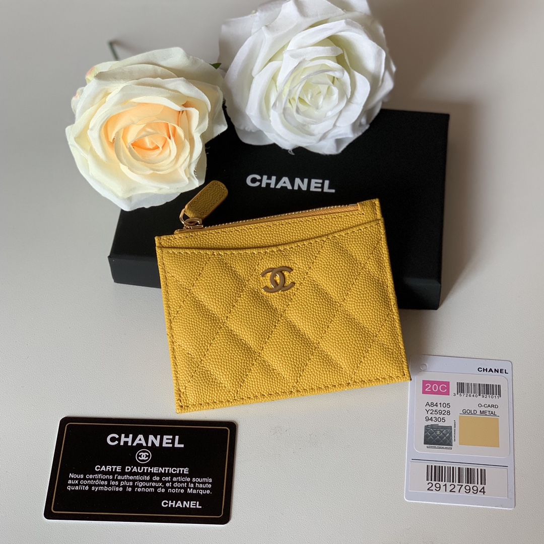 Chanel Flat Card Holder Yellow Bag For Women 11.5cm/4.5in