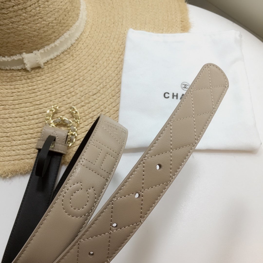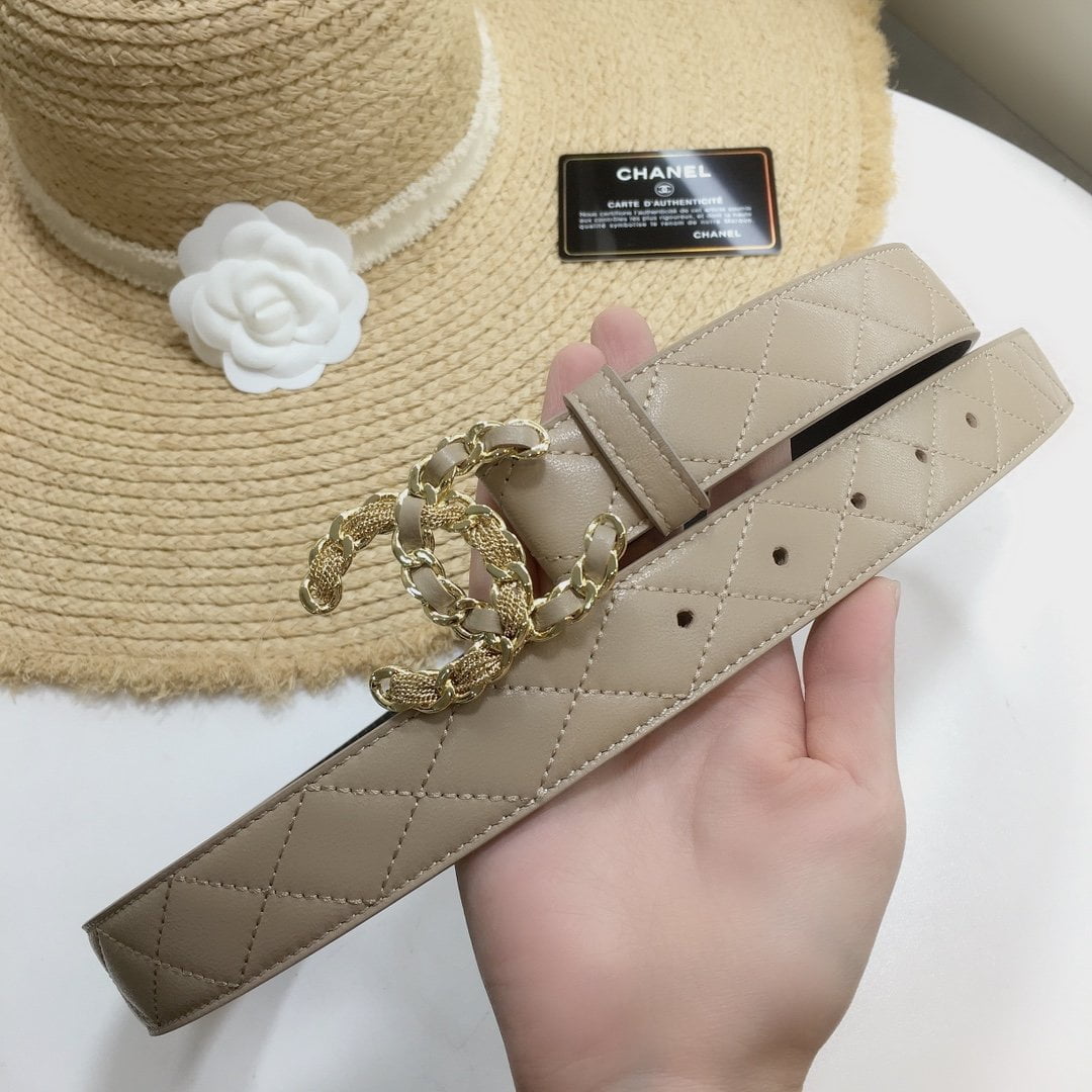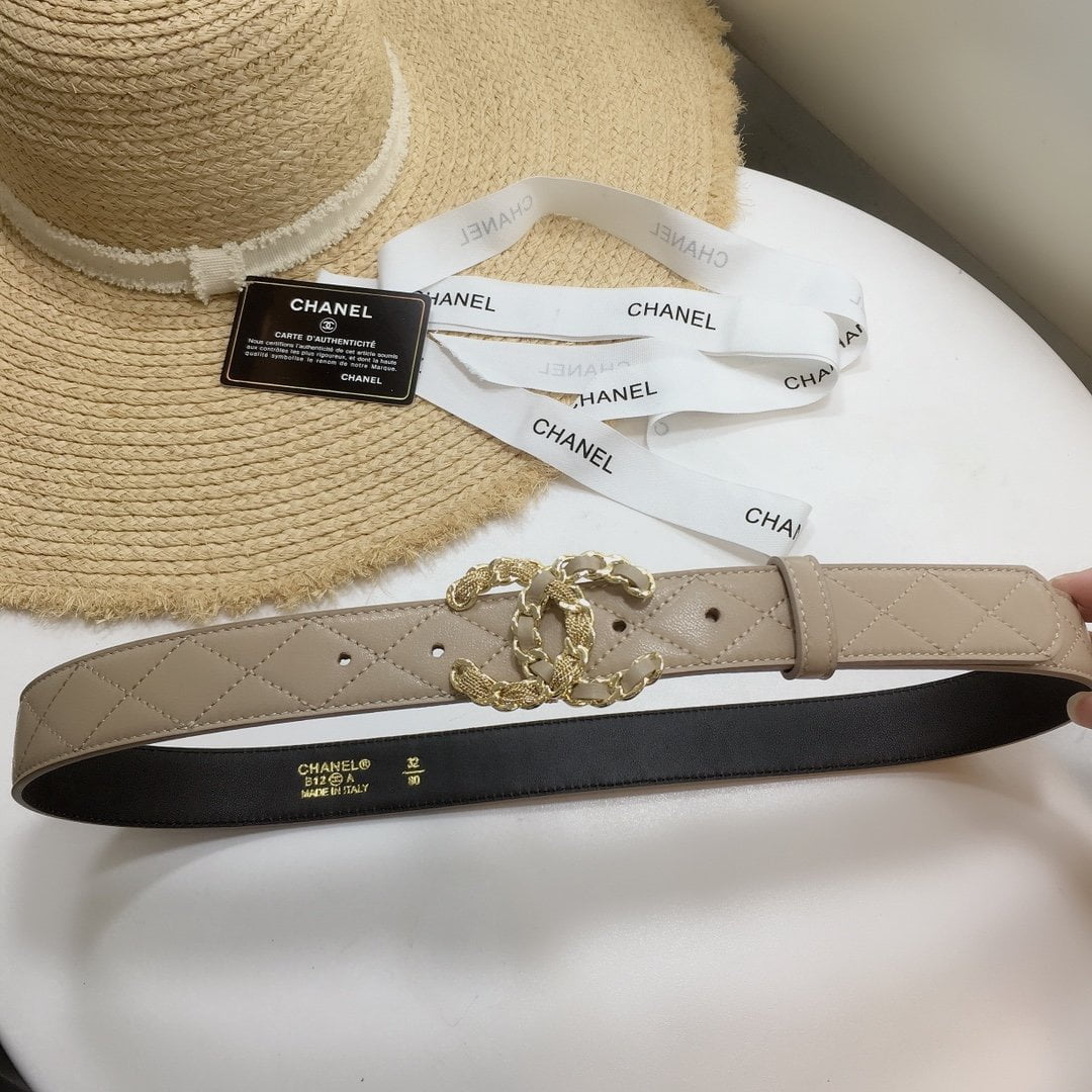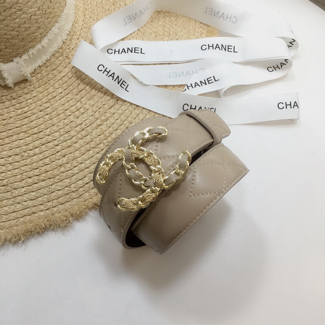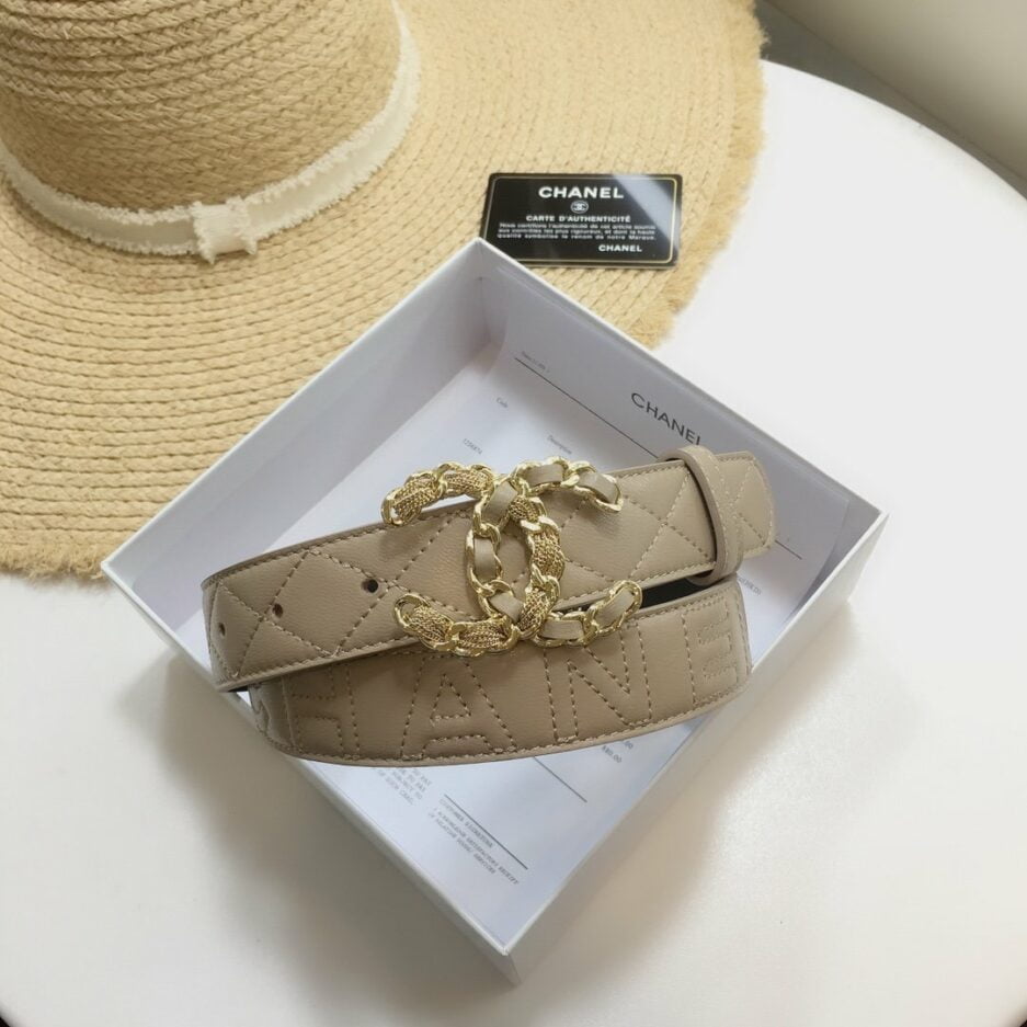 Chanel Quilted Belt With Double C Buckle Beige with Gold mix Beige Hardware Women Belt