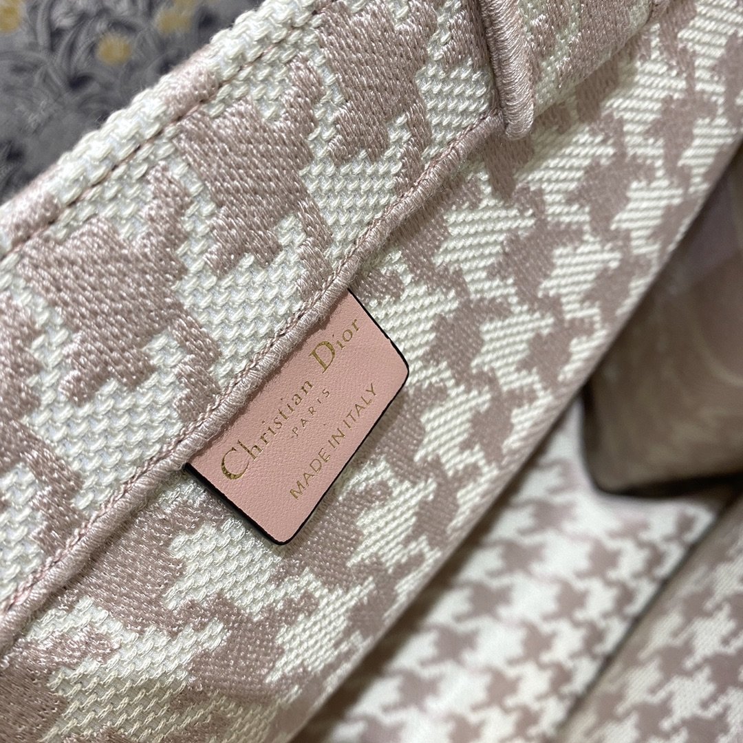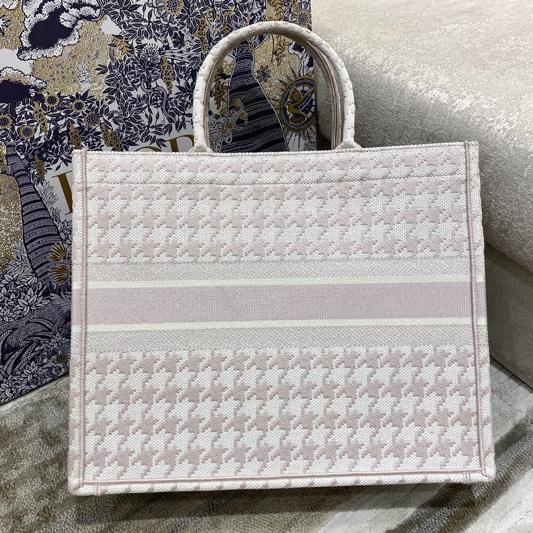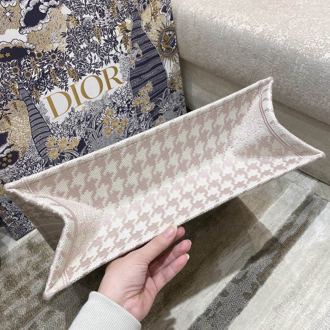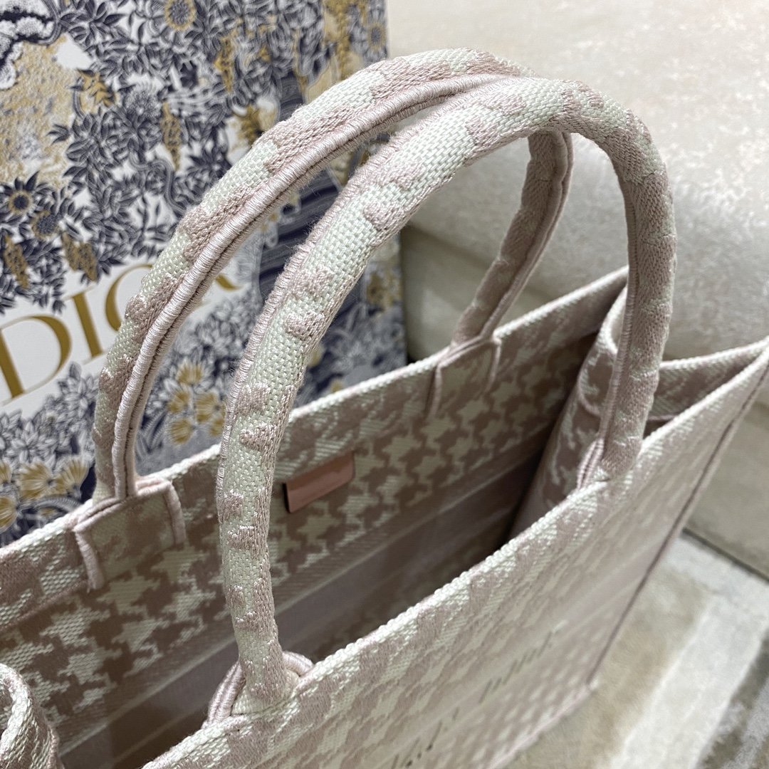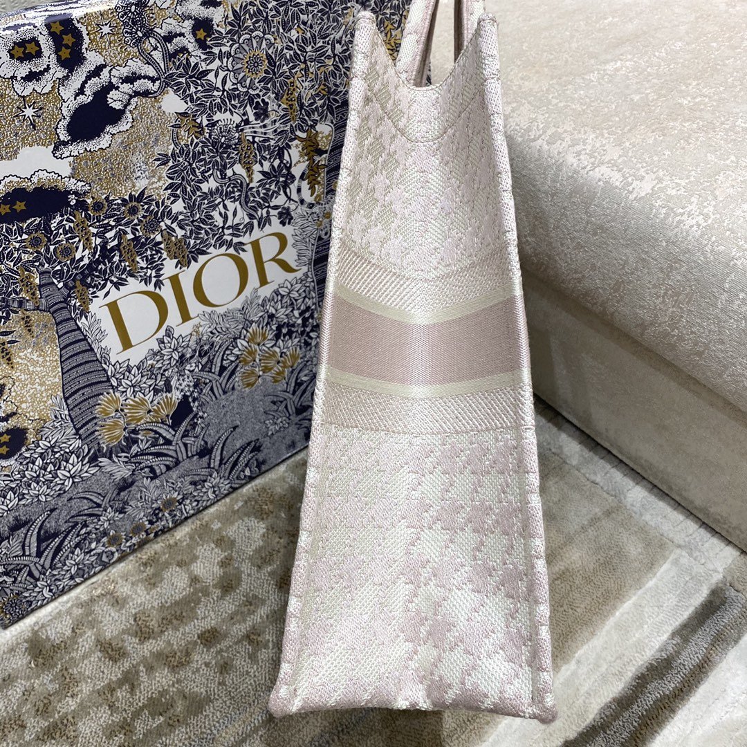 Christian Dior Large Dior Book Tote Pale Pink Houndstooth Embroidery, Pink, For Women Women’s Handbags, Shoulder Bags, 42cm CD