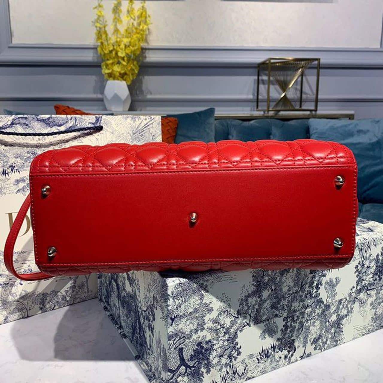 Christian Dior Large Lady Dior Bag Gold toned hardware Cherry Red Cannage For Women CD 12.5in/32cm M0566ONGE_M52R