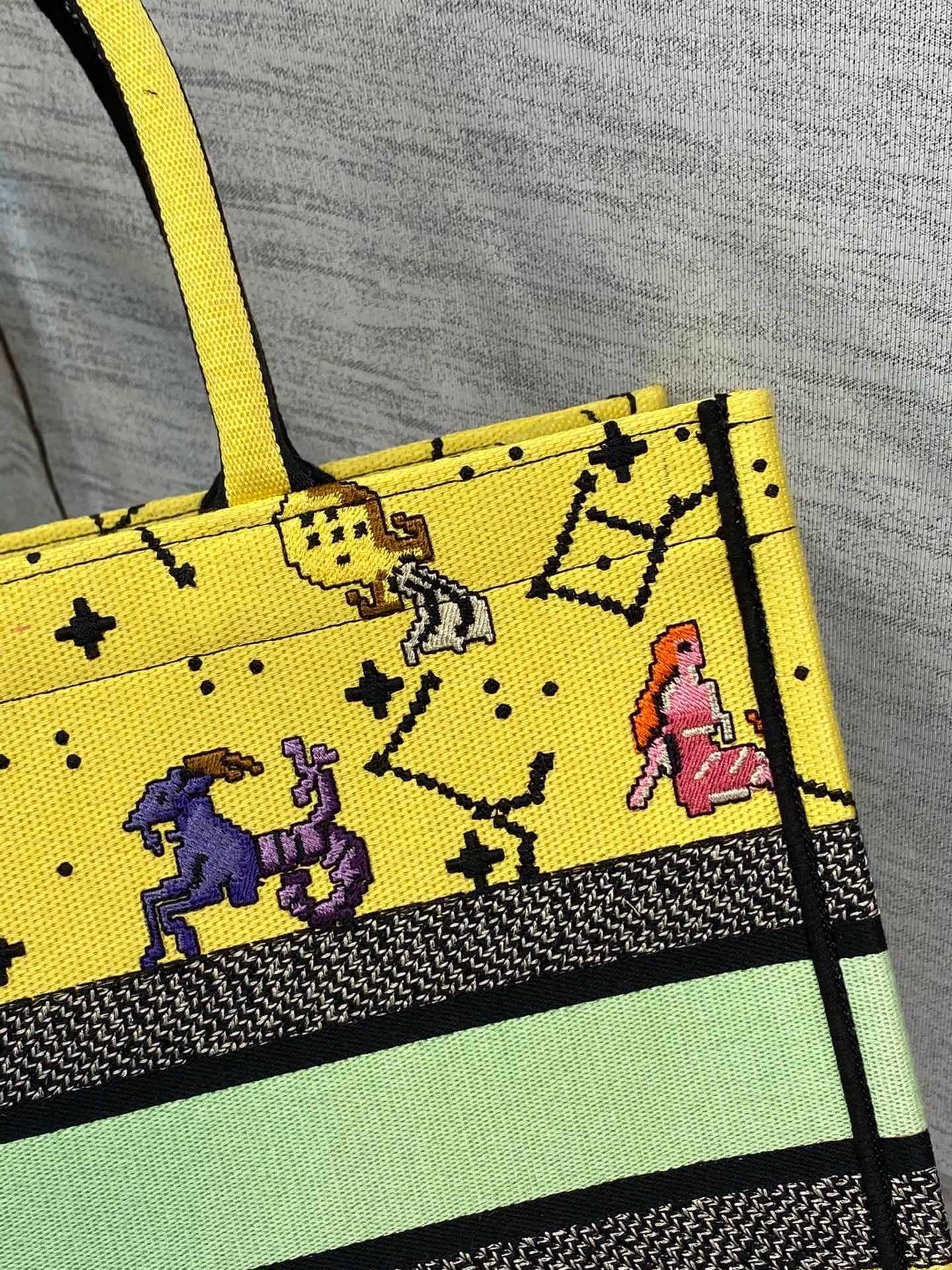 Christian Dior Medium Dior Book Tote Yellow Multicolor, For Women, Women’s Handbags 14in/36cm CD