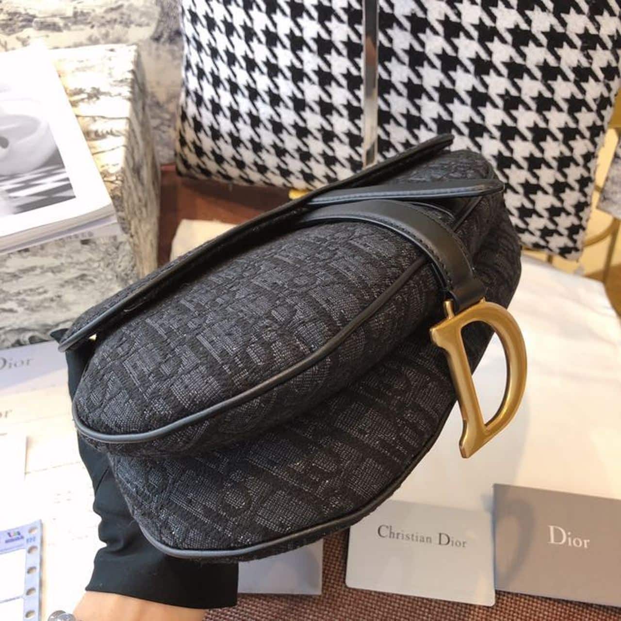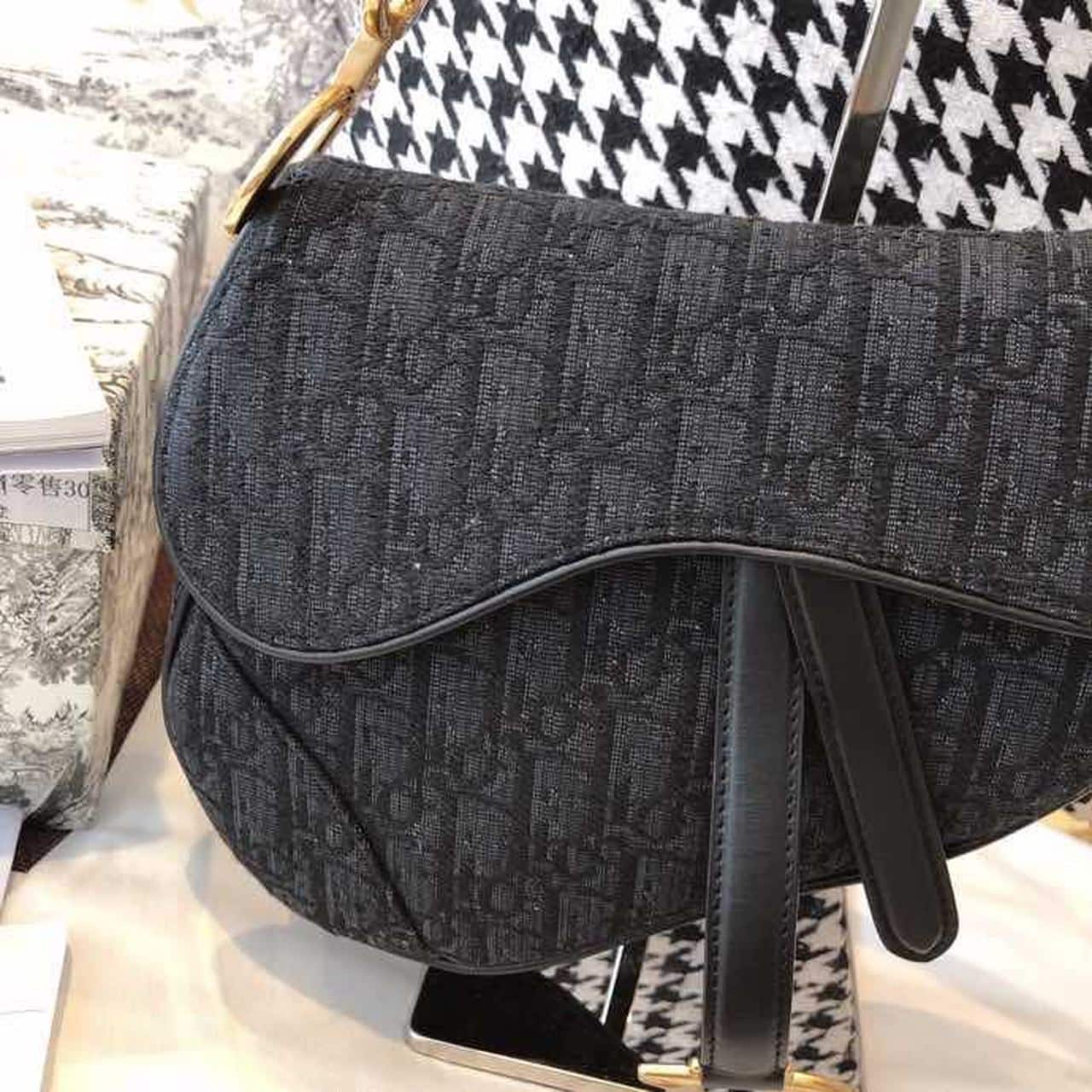 Christian Dior Saddle Bag Black Oblique Embroidered Canvas Gold toned hardware For Women 25cm/10in CD