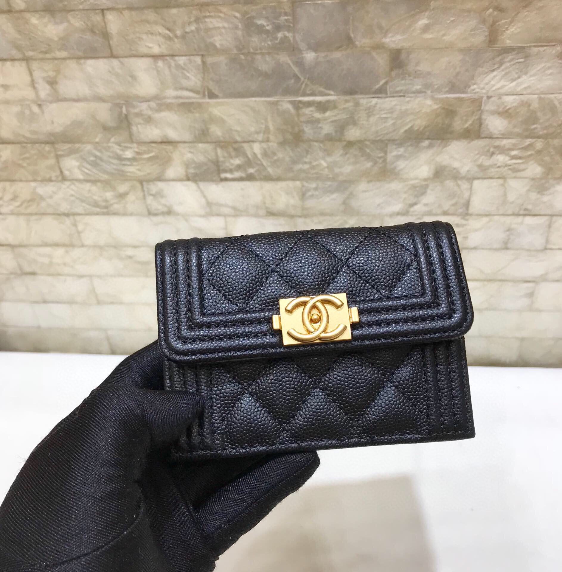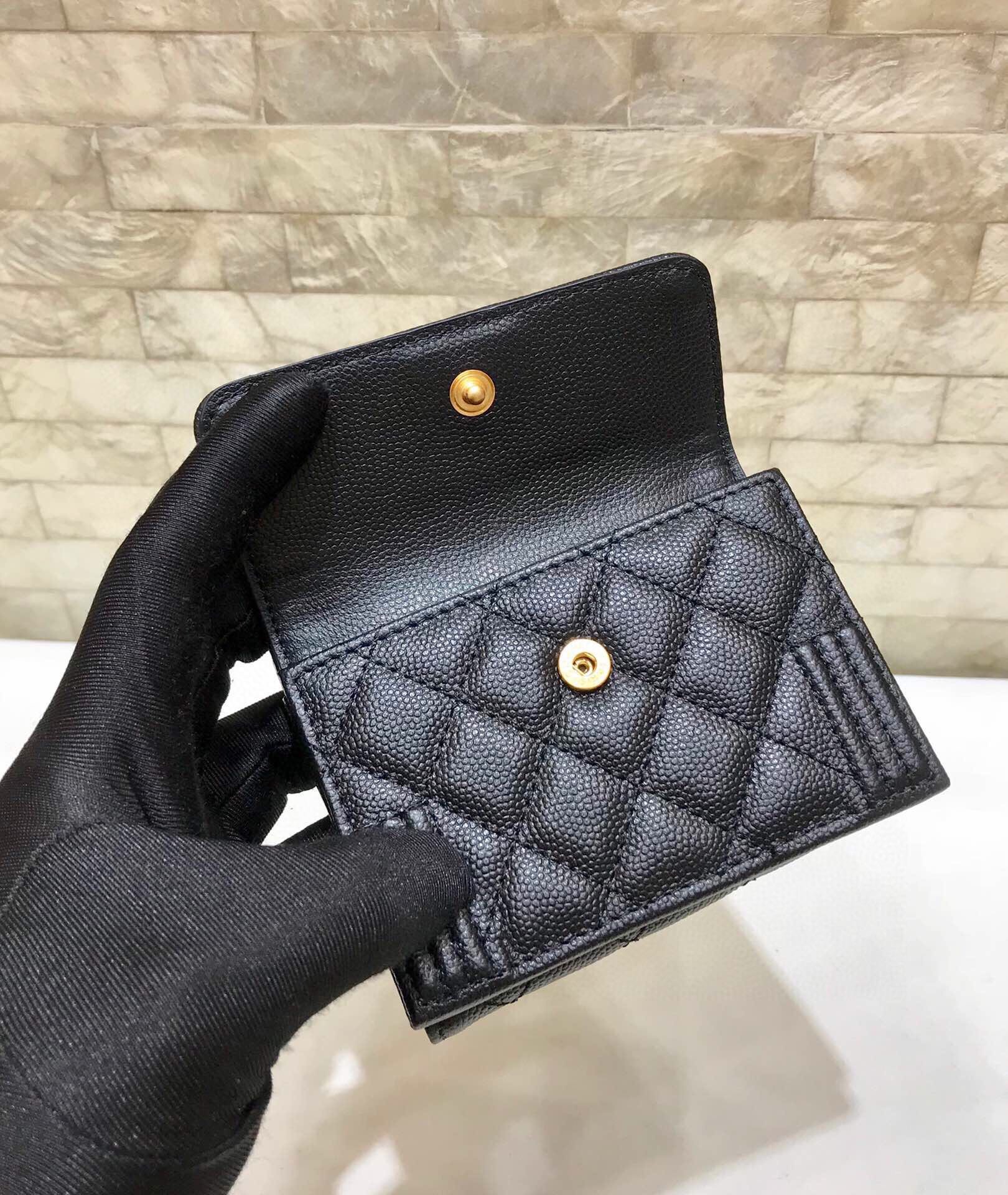 Chanel CO-CO Flap Card Holder Wallet 10.5cm/4.1in Gold Hardware For Women Black