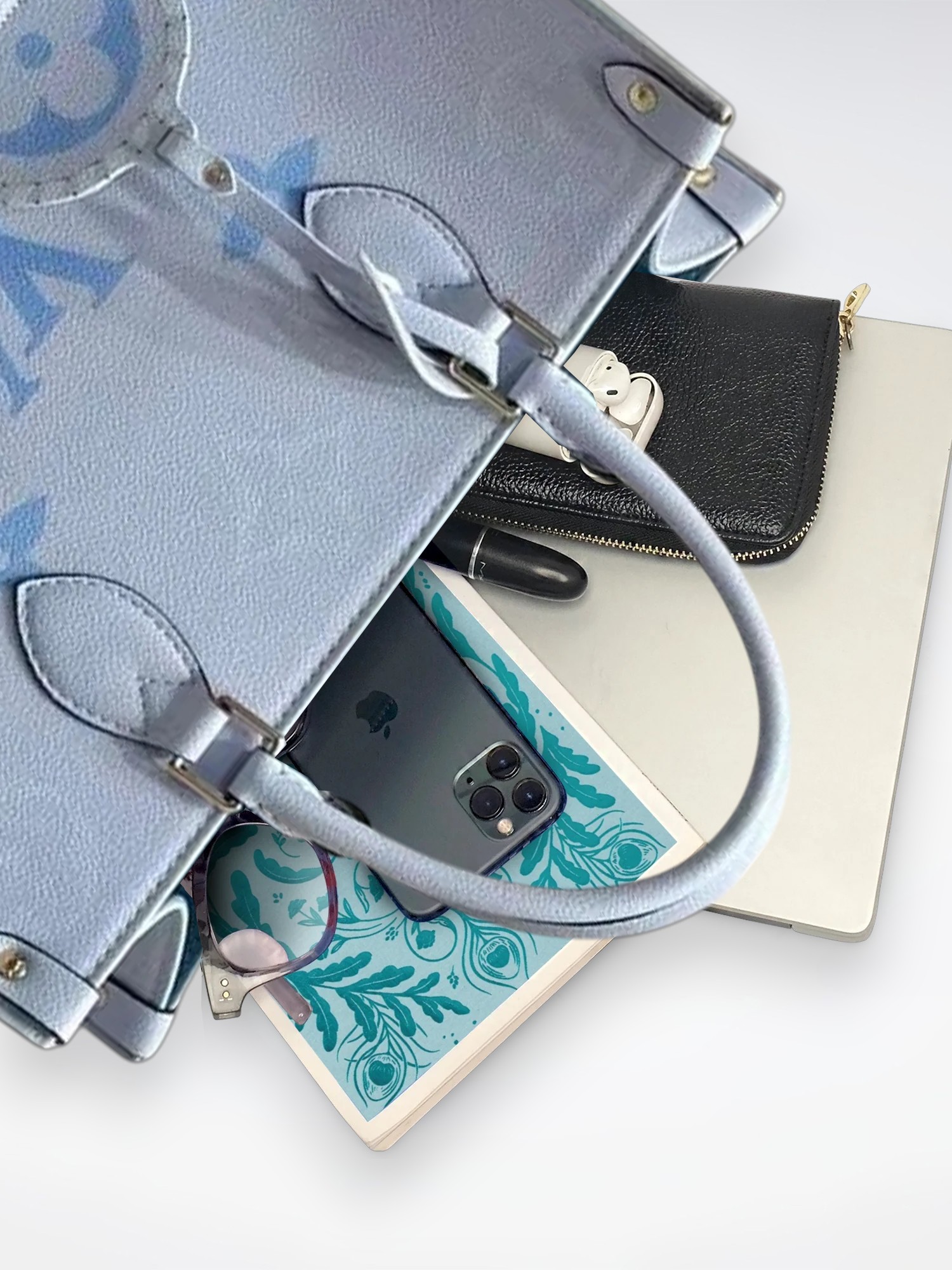 This handbag is spacious yet stylish, fitting a 13″ laptop, books, wallet, and more. Crafted from premium vegan leather, it’s durable, elegant, and easy to carry. With comfortable handles and straps, it’s perfect for work, travel, or everyday use, keeping essentials organized and protected. Size