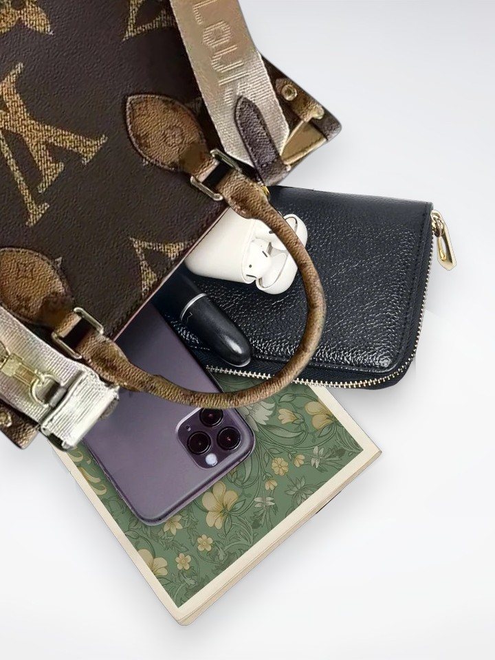 This compact handbag is lightweight yet versatile, fitting your phone, tablet, wallet, and daily essentials with ease. Crafted from premium vegan leather, it’s durable, chic, and easy to carry. With comfortable handles and straps, it’s perfect for work, travel, or everyday use, keeping essentials organized and protected. Size