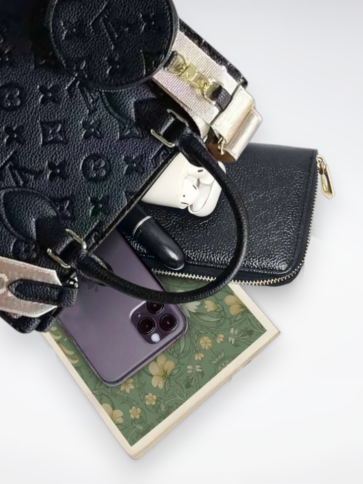 This compact handbag is lightweight yet versatile, fitting your phone, tablet, wallet, and daily essentials with ease. Crafted from premium vegan leather, it’s durable, chic, and easy to carry. With comfortable handles and straps, it’s perfect for work, travel, or everyday use, keeping essentials organized and protected. Size