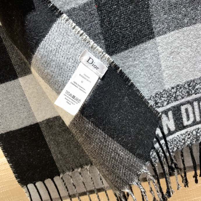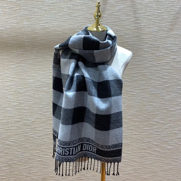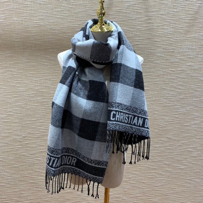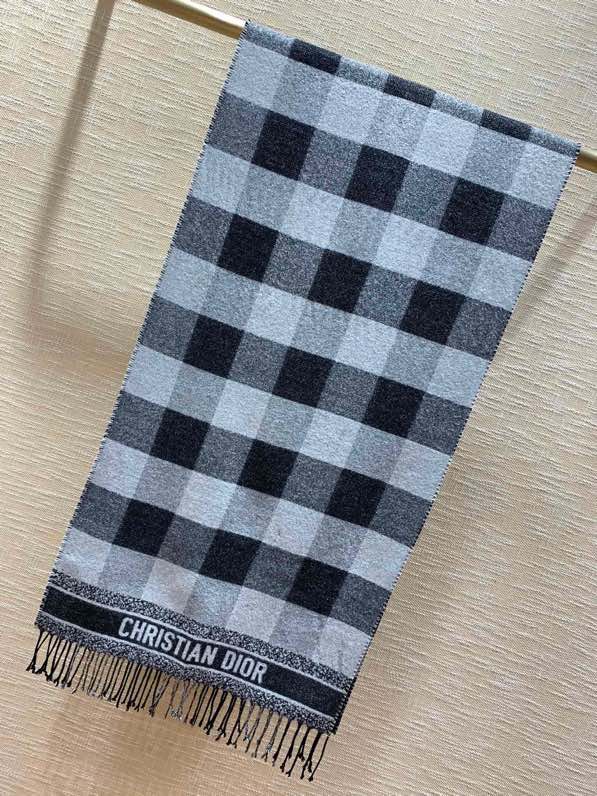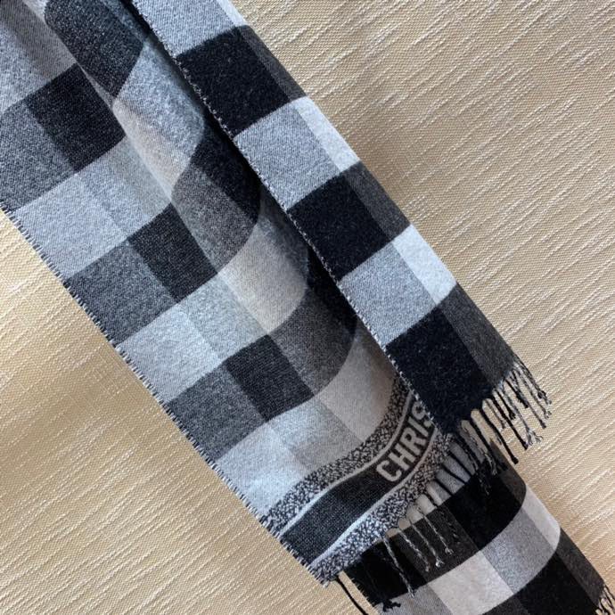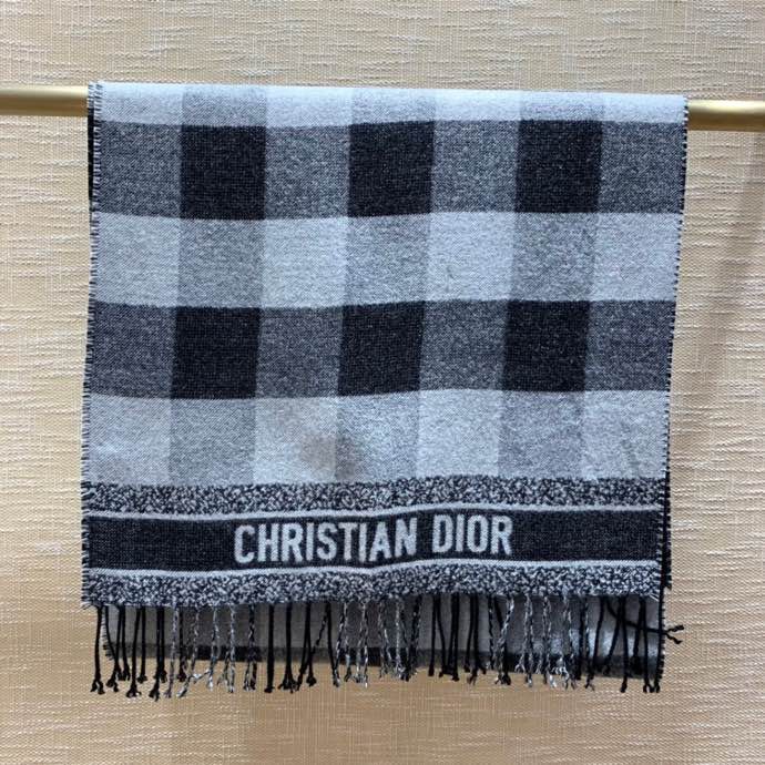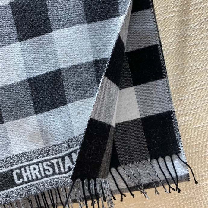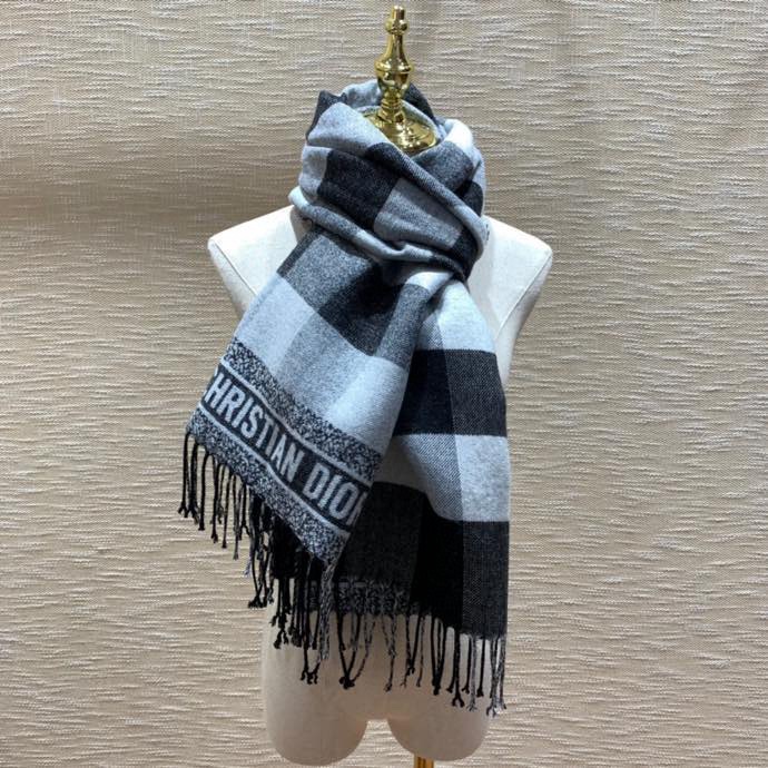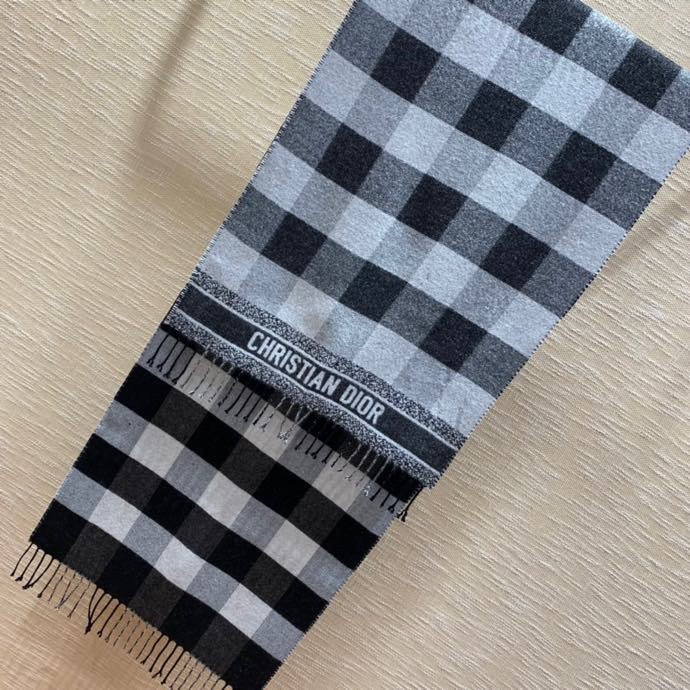 Dior Caro Patterns White and Black Wool Scarf 200cm/79in