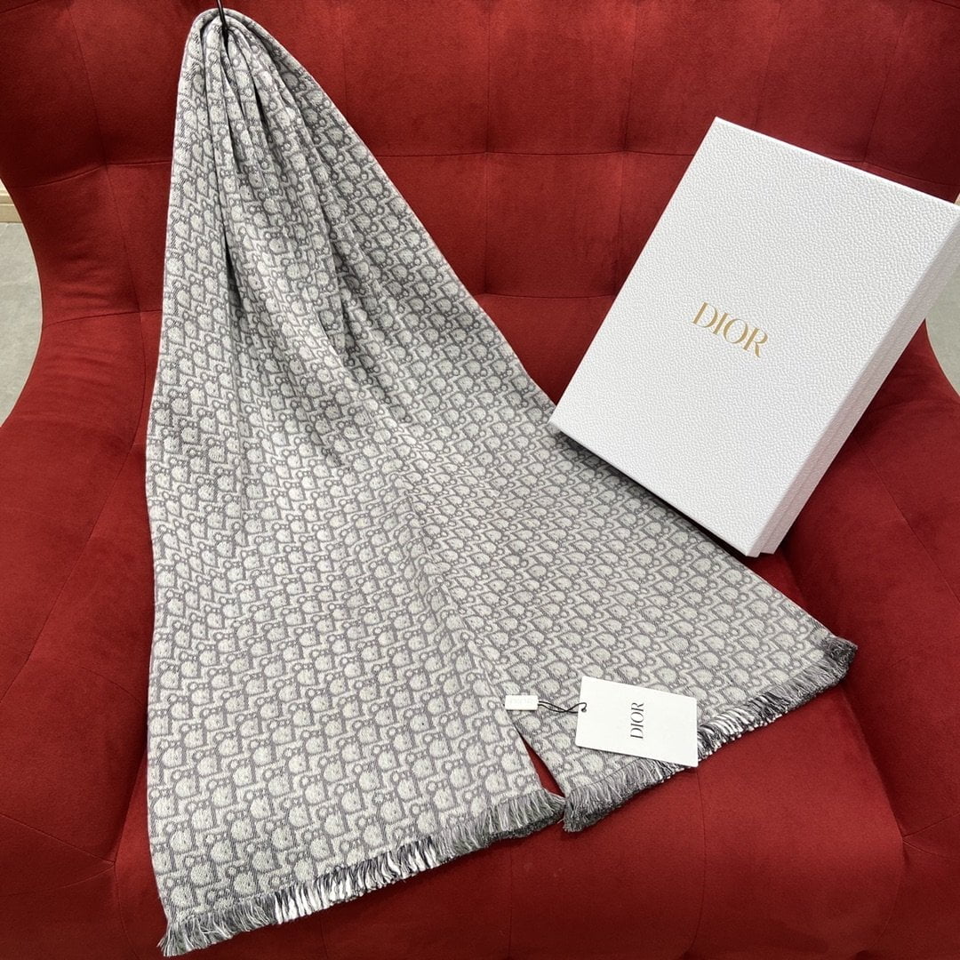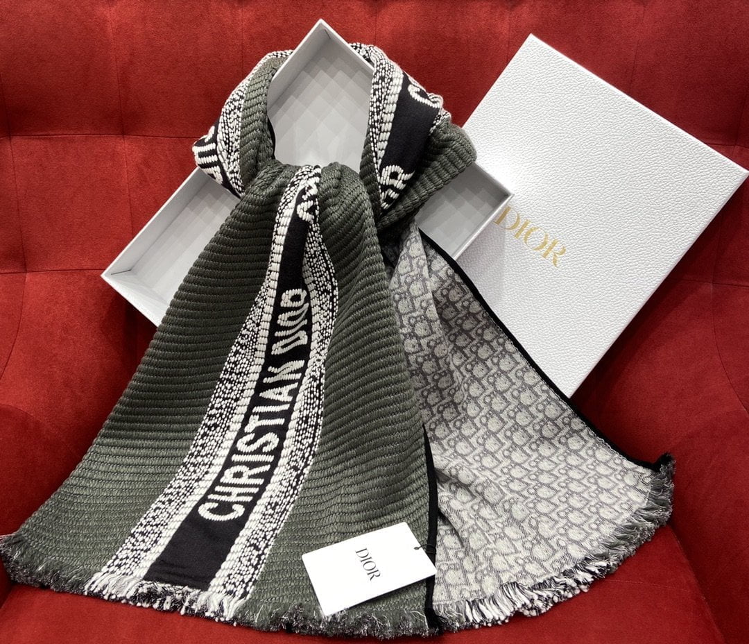 Dior Oblique University Reversible Scarf Green Grey 79in/200cm