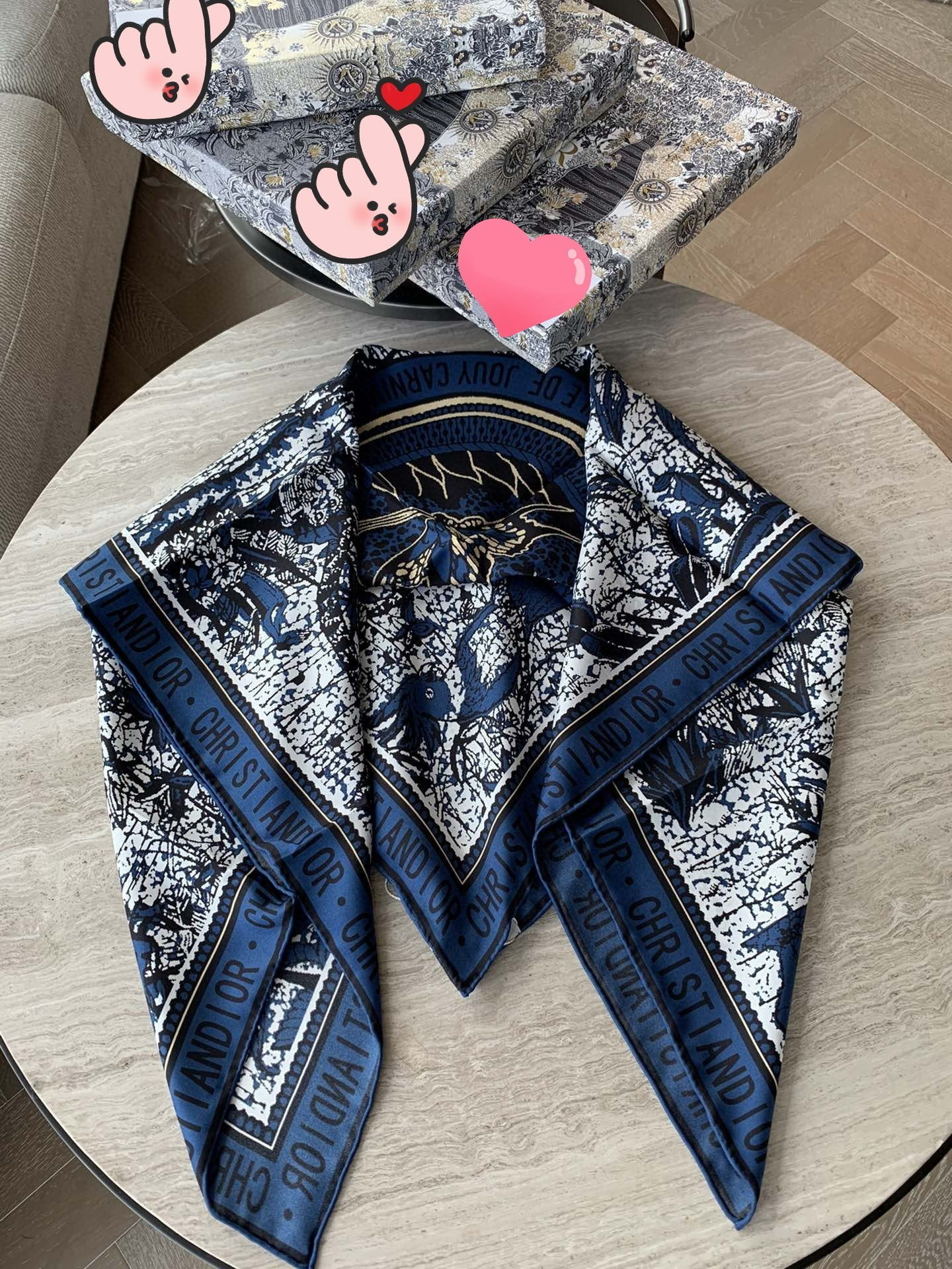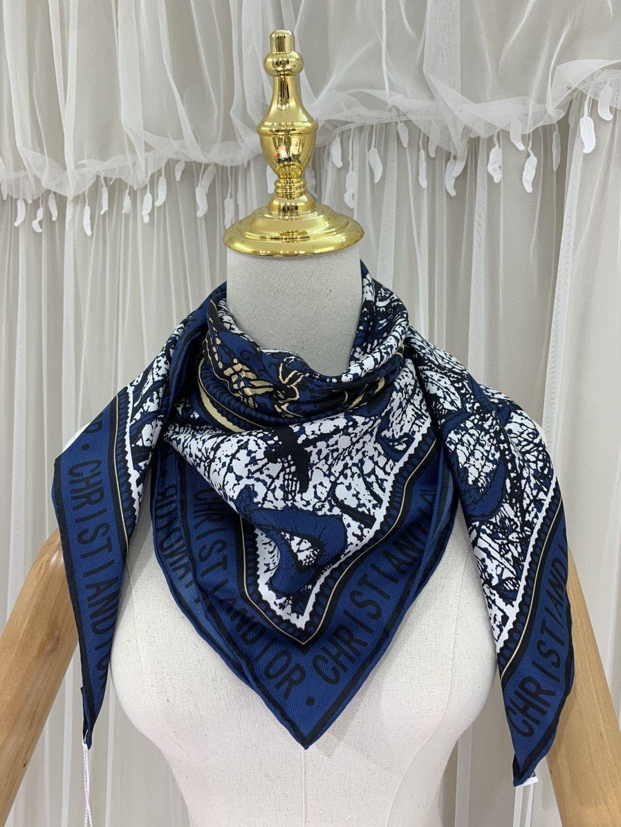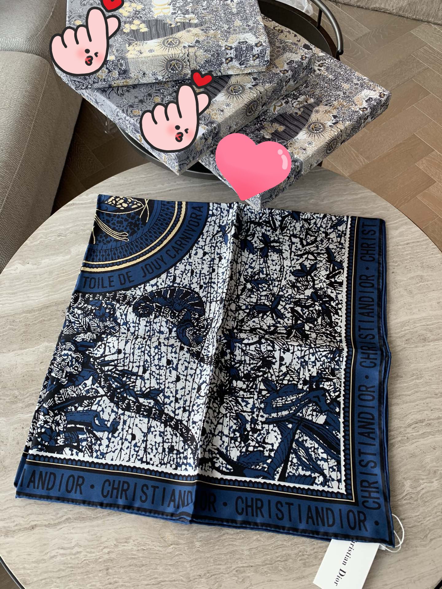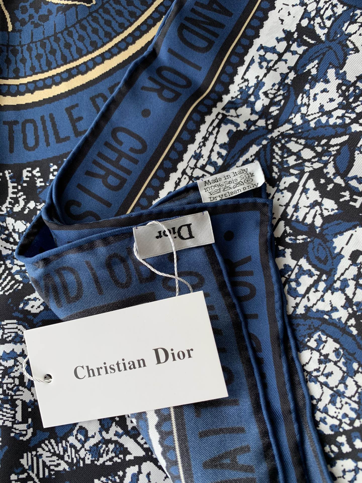 Dior Toile de Jouy Carnivora 90 Square Scarf Blue 35in/90cm