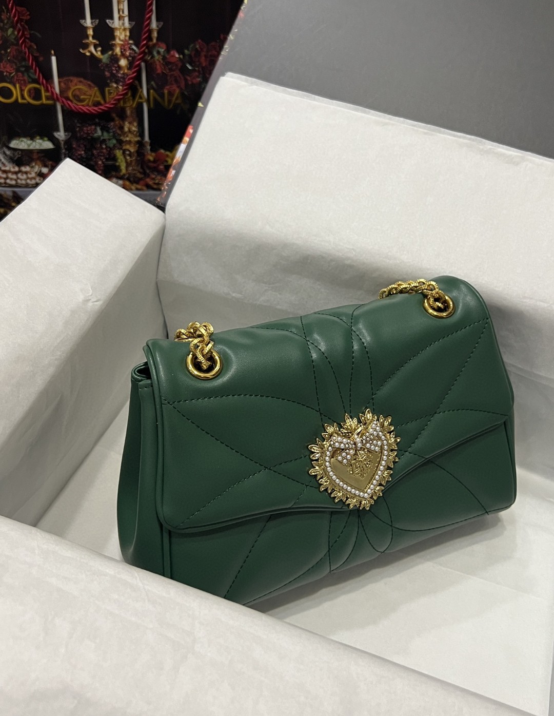 Be the first to review “Dolce & Gabbana Large Devotion Shoulder Bag In Quilted Nappa Green For Women 11.4in/29cm DG” Cancel reply