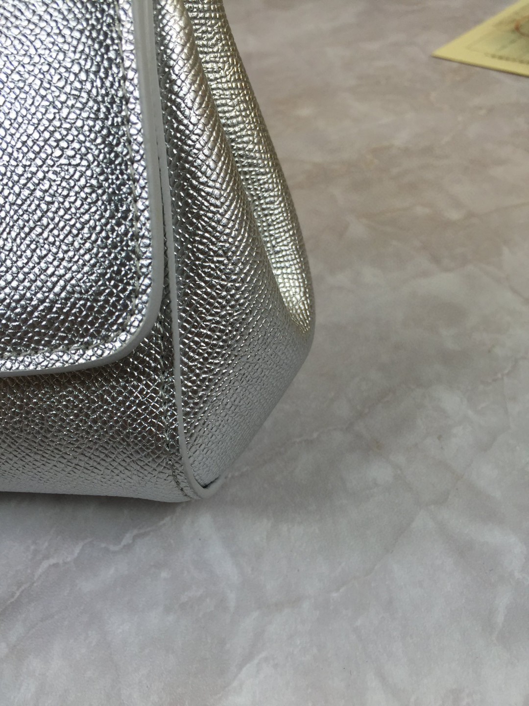 Dolce & Gabbana Medium Sicily Handbag In Dauphine Silver For Women 10.2in/26cm DG
