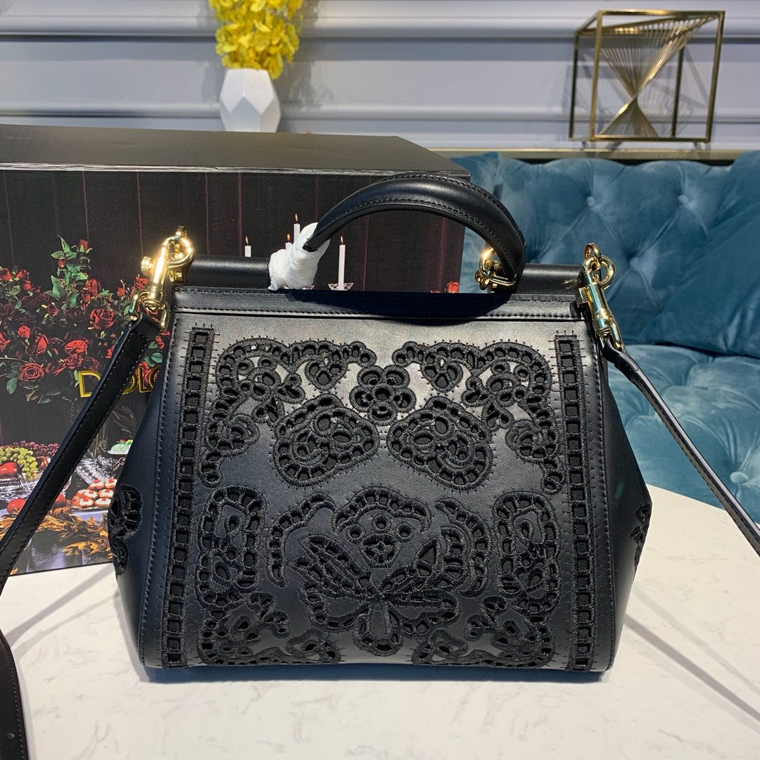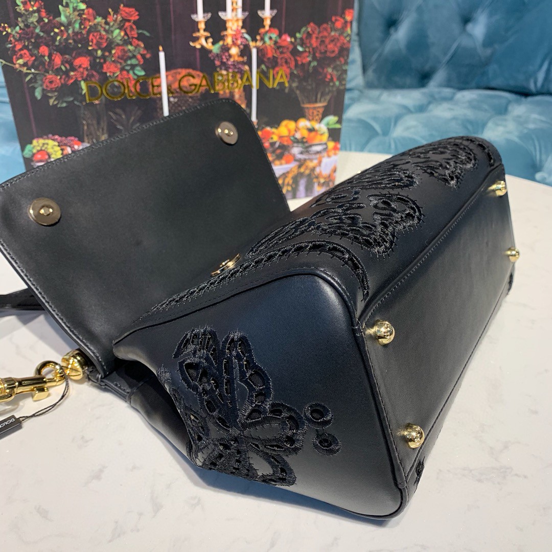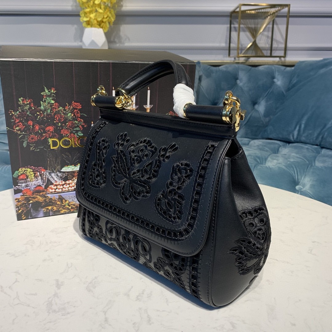 Dolce & Gabbana Medium Sicily Bag In Embroidered Black For Women 10.2in/26cm DG