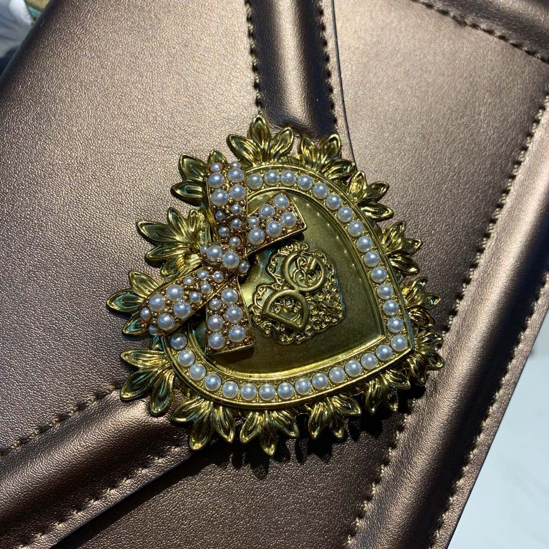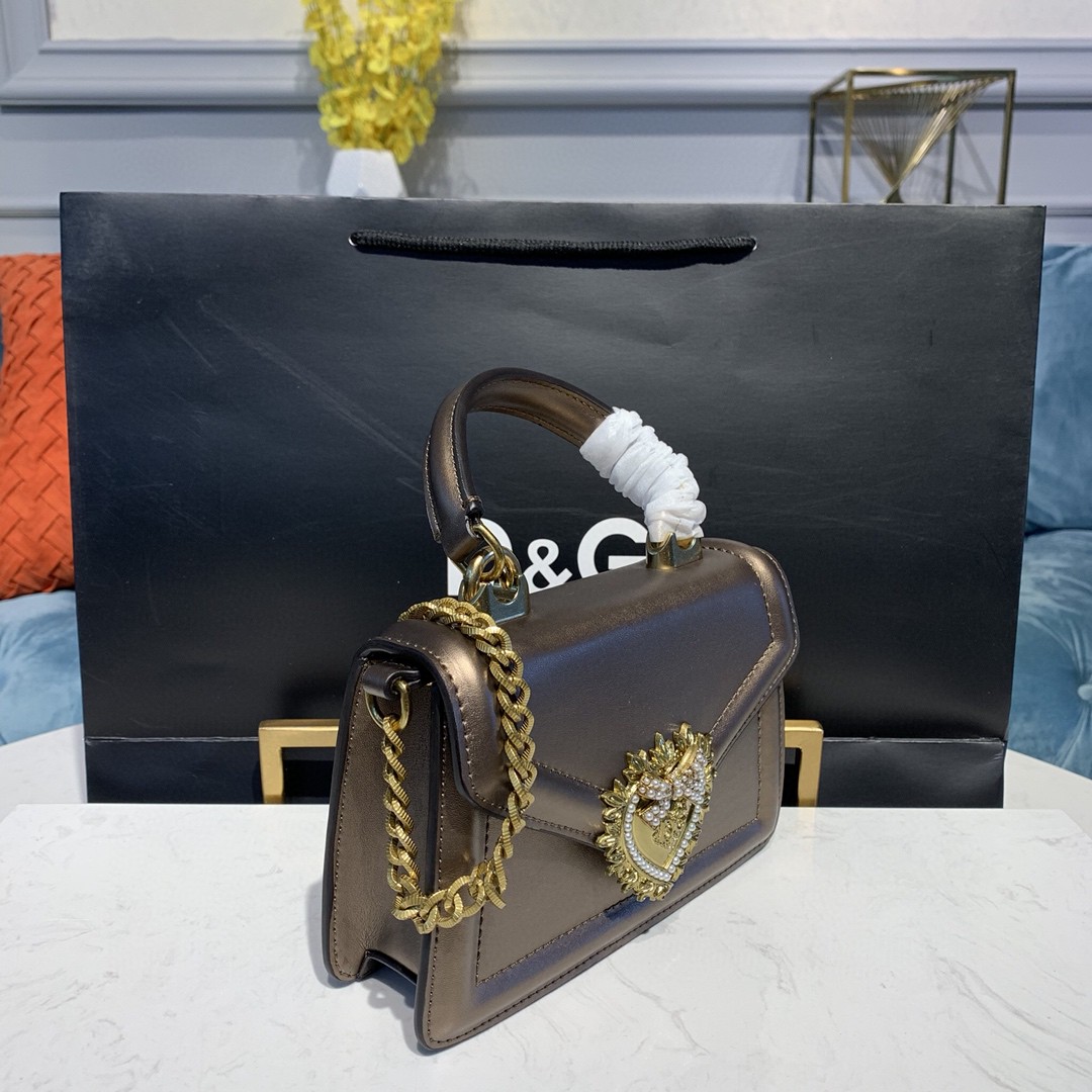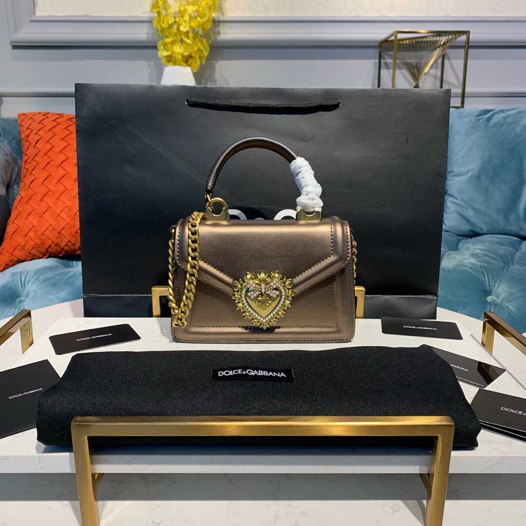 Dolce & Gabbana Small Devotion Bag In Mordore Nappa Antique Brass For Women 7.5in/19cm DG