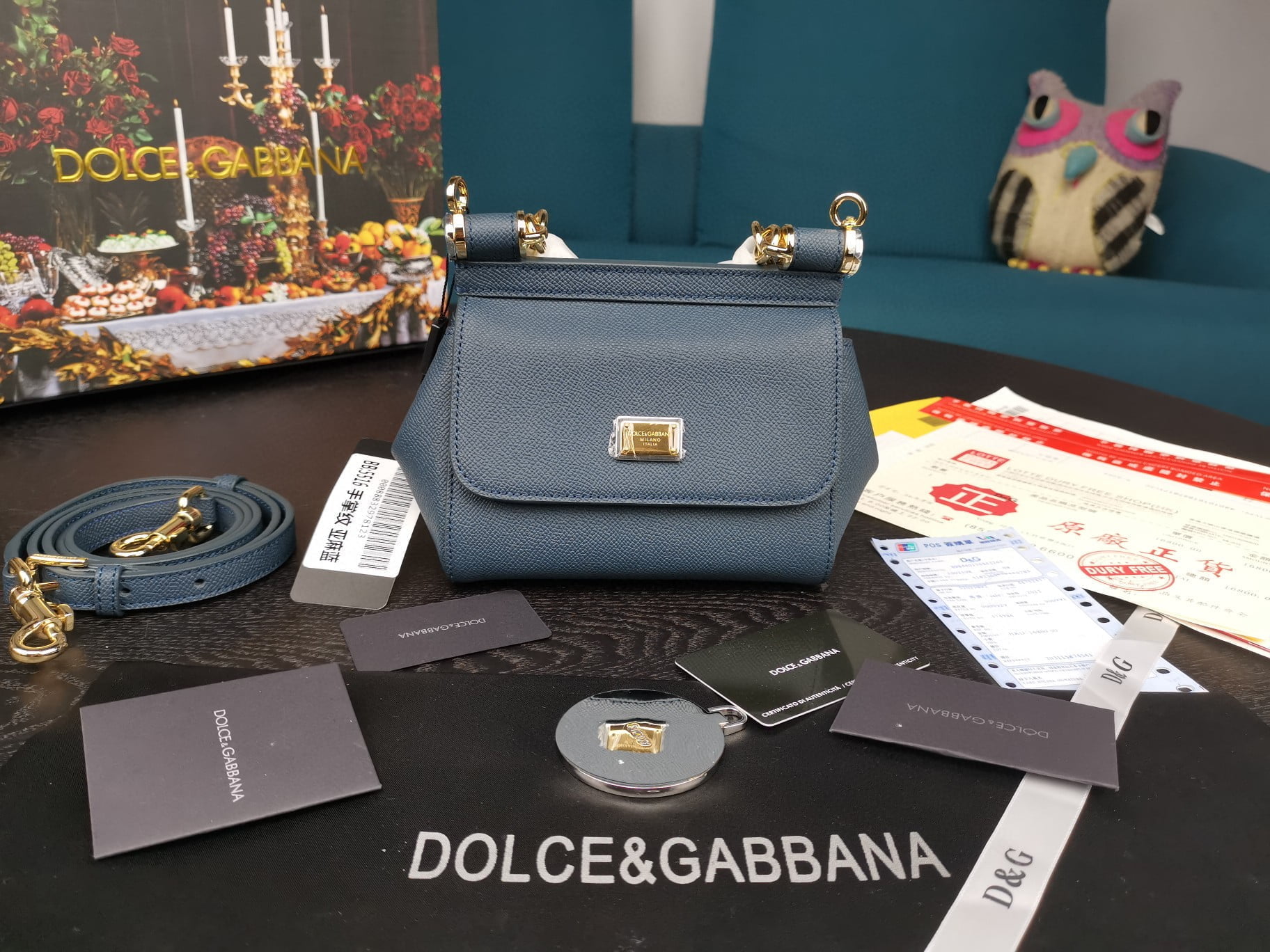 Be the first to review “Dolce & Gabbana Small Sicily Bag In Dauphine Blue For Women 7.5in/19cm DG” Cancel reply