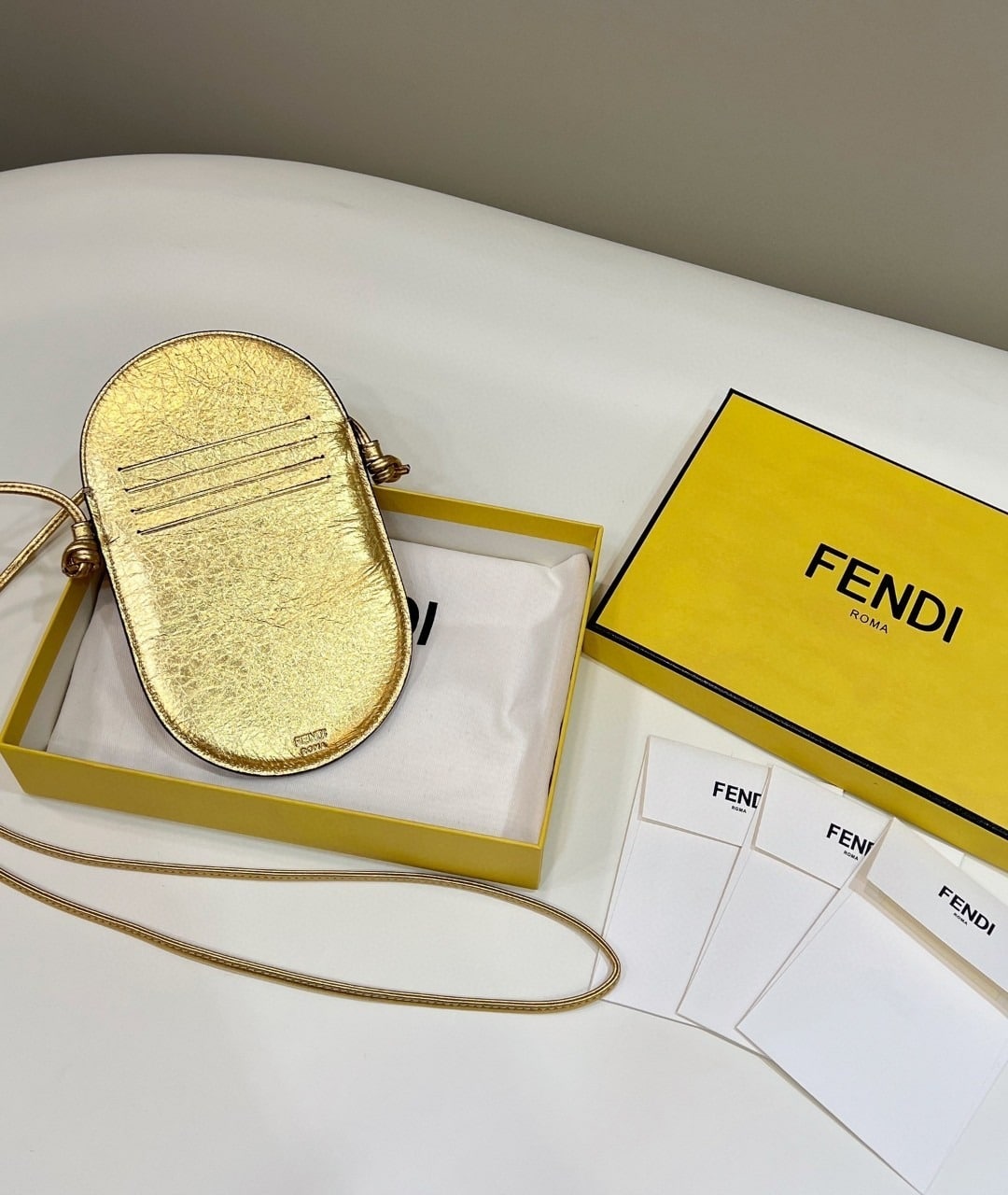 Fendi 12 Pro Phone Holder Gold Bag For Woman 21.5cm/8.5in 7AS055AISPF0RXU