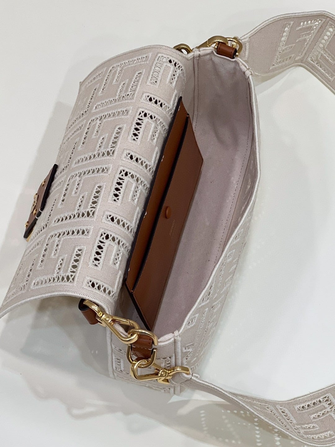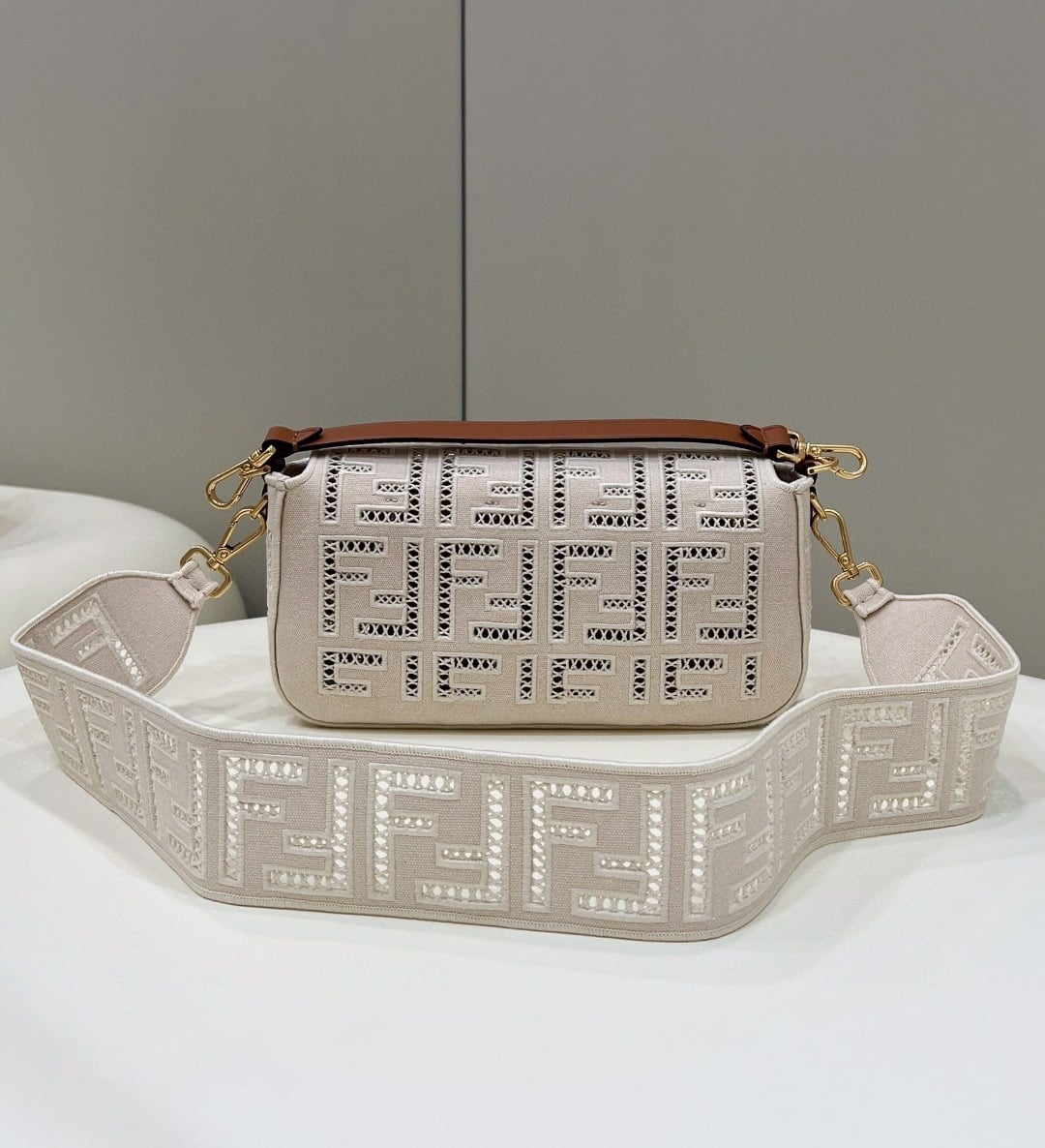Fendi Baguette White with Embroidery Medium Bag For Woman 28cm/11in