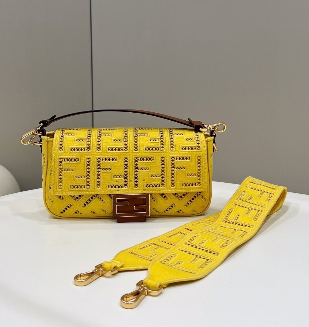 Fendi Baguette Yellow with Embroidery Medium Bag For Woman 28cm/11in