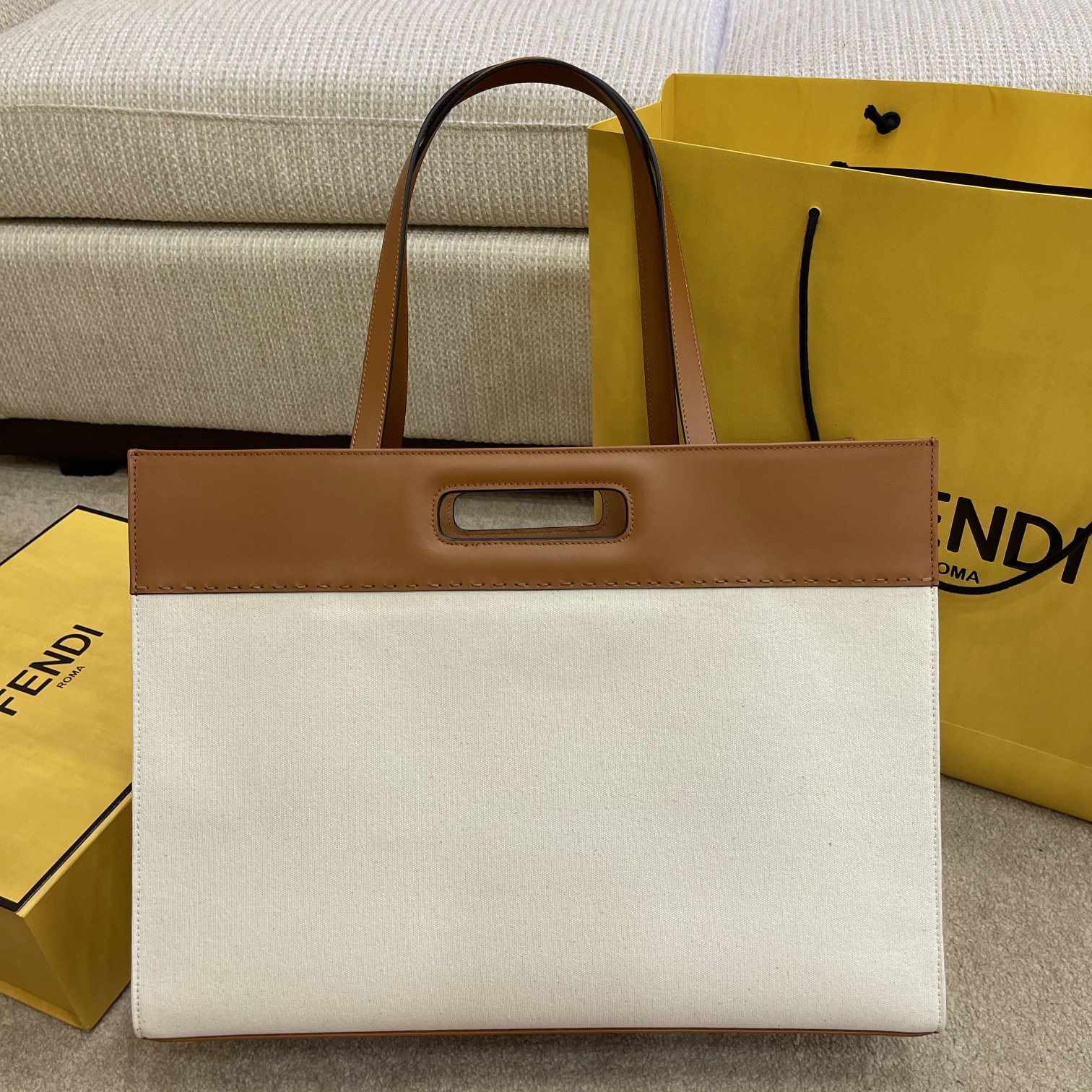 Fendi Canvas Tote Bag Beige/Brown For Women, Women’s Handbags 18.1in/46cm FF 7VA480