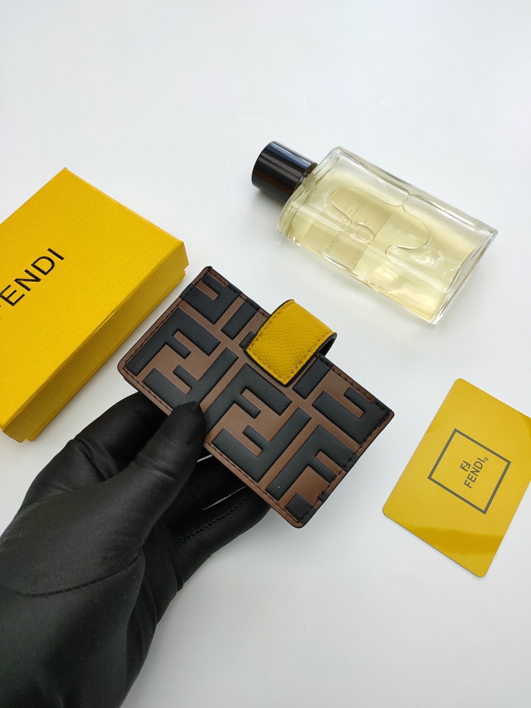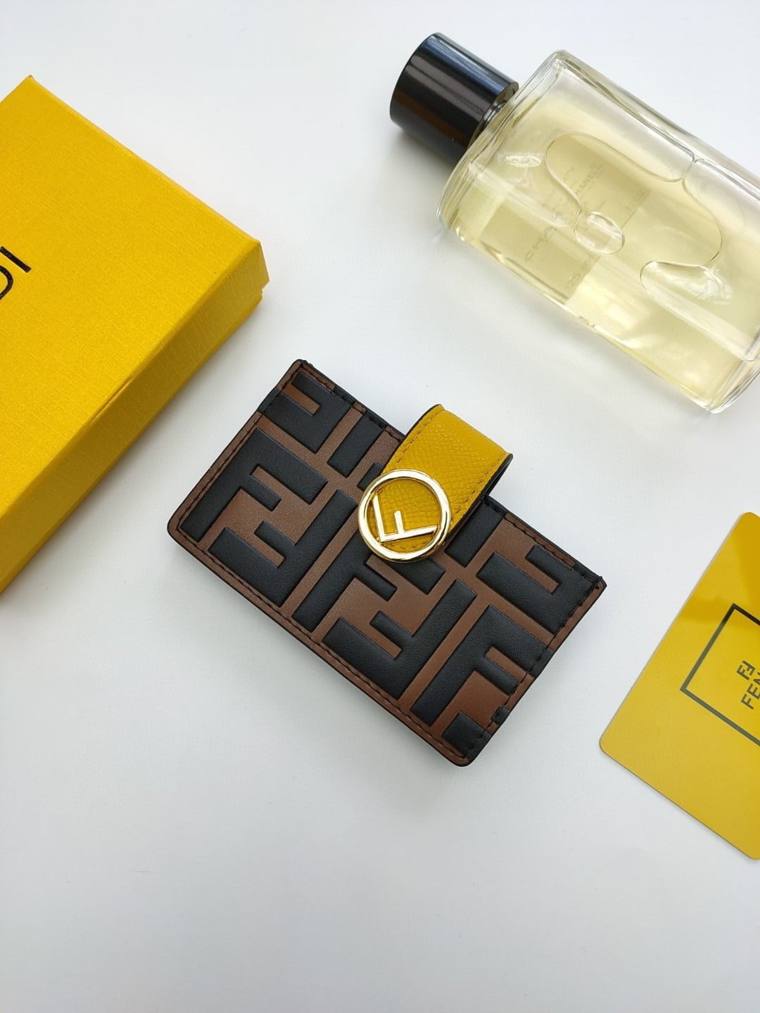 Fendi Card Holder Brown With Yellow Gusseted Card Holder For Women 4in/10cm FF 8M0301A6CBF19DA
