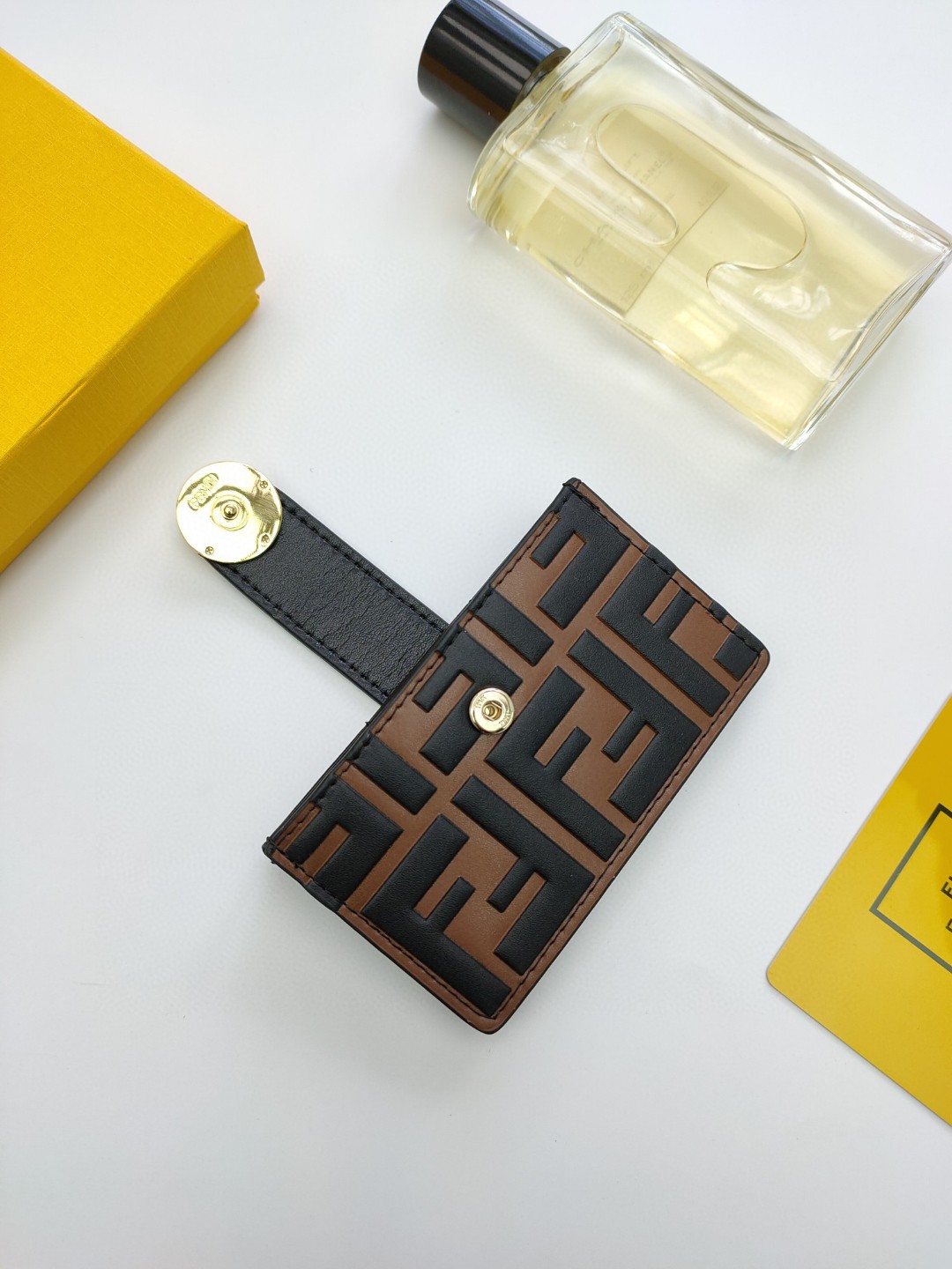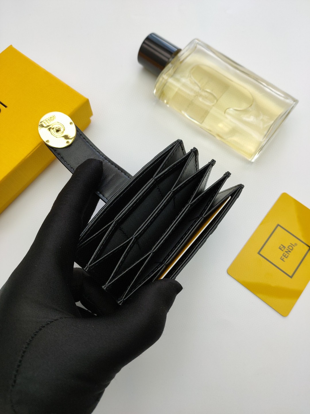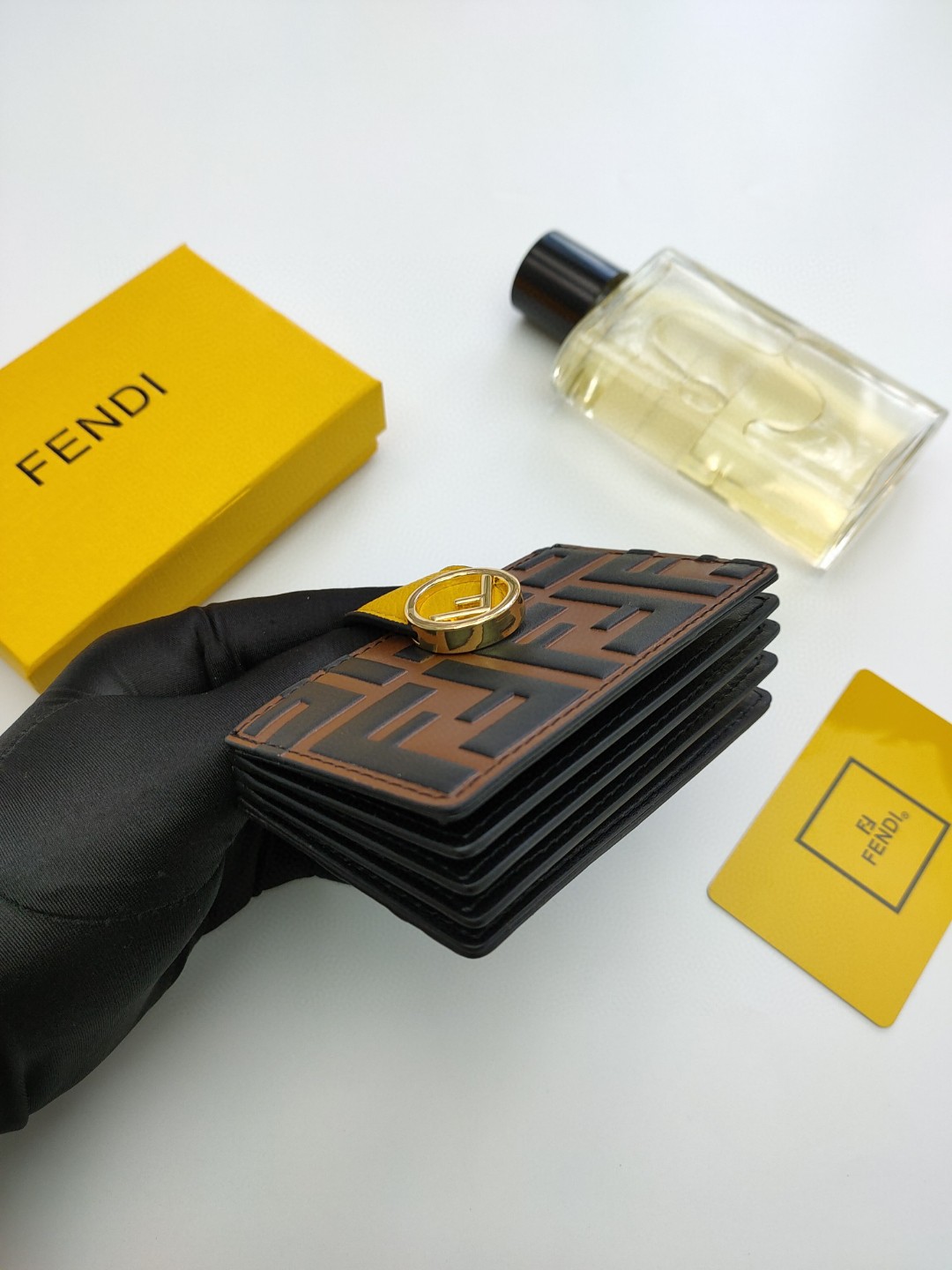 Flat F is Fendi card holder with central compartment and five credit card slots.