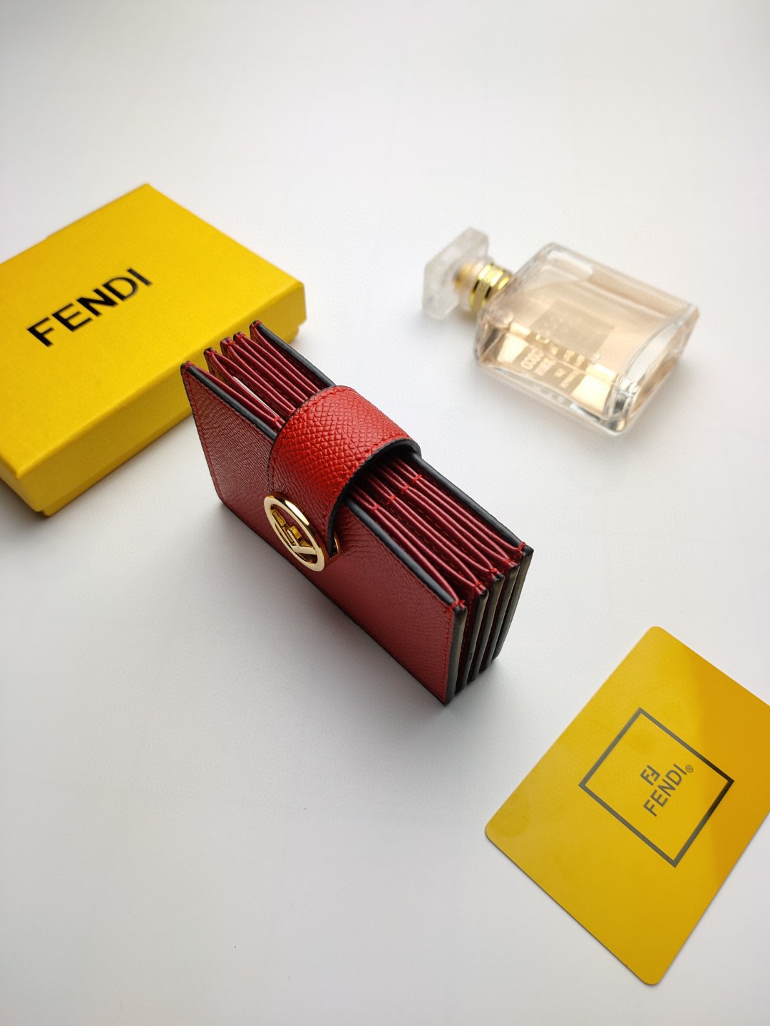 Fendi Card Holder Red With Red Gusseted Card Holder For Women 4in/10cm FF