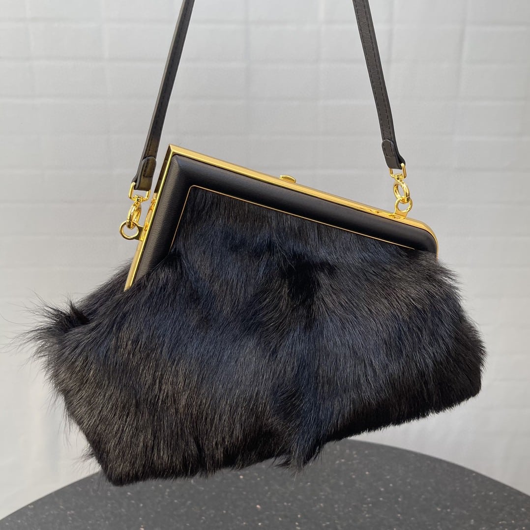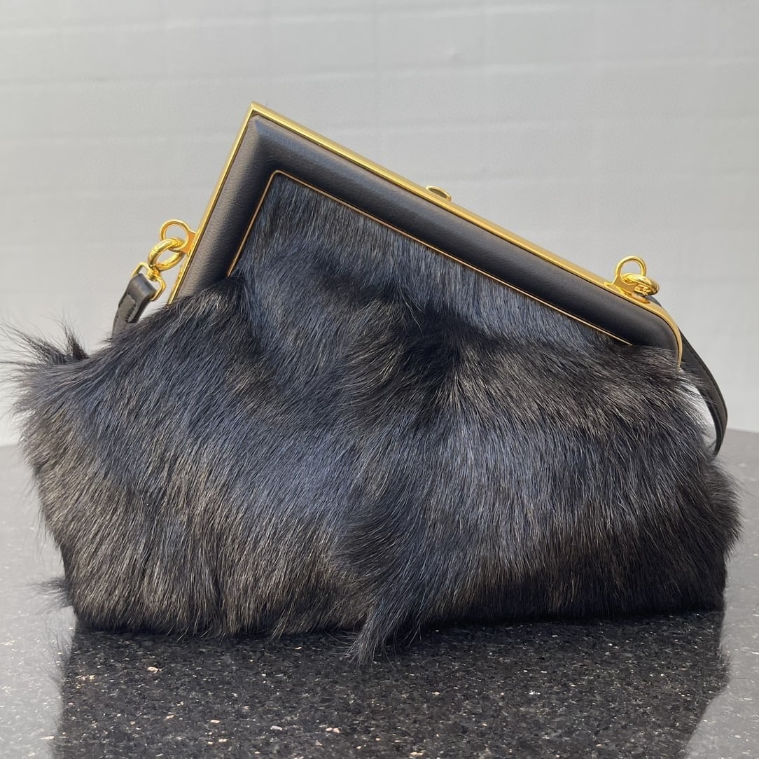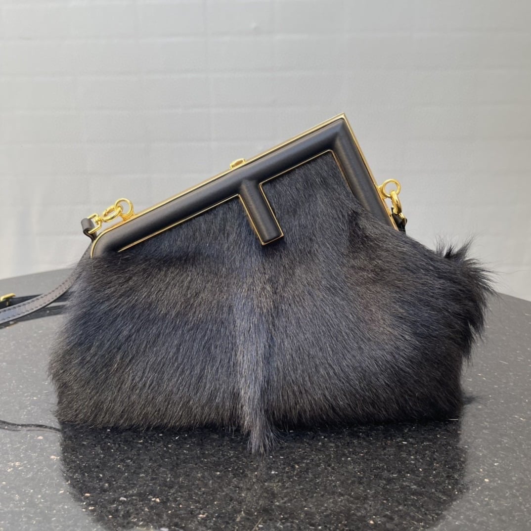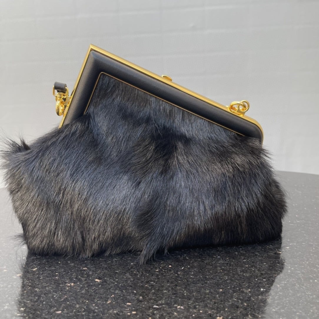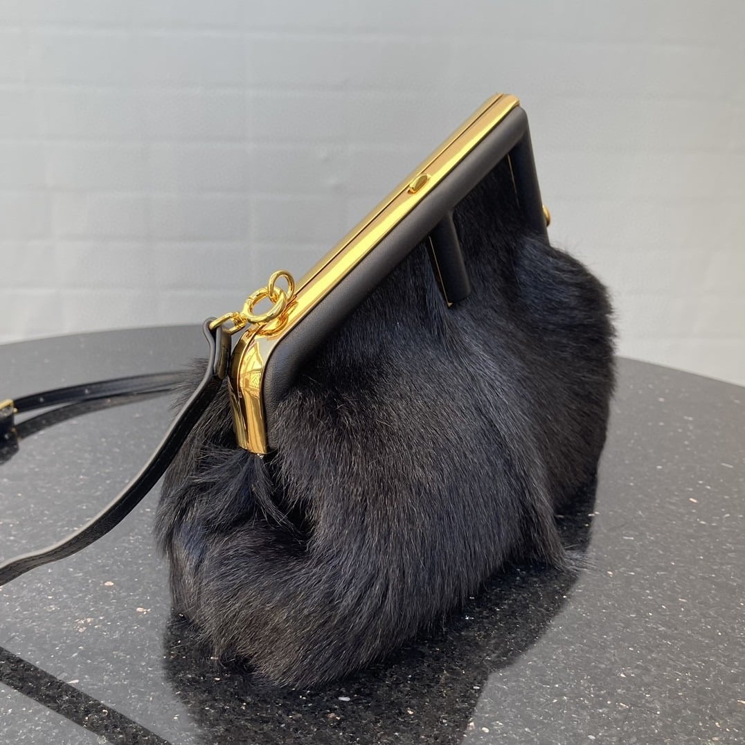 Fendi First Small Black Fox Fur Bag For Woman 26cm/10in