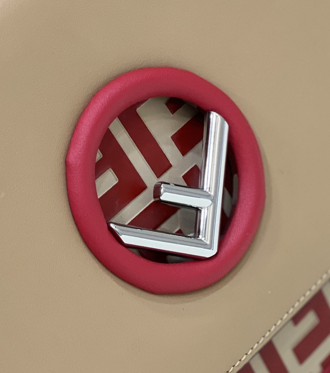 Fendi Kan I F Medium Brown and Red Bag For Woman 18cm/7in
