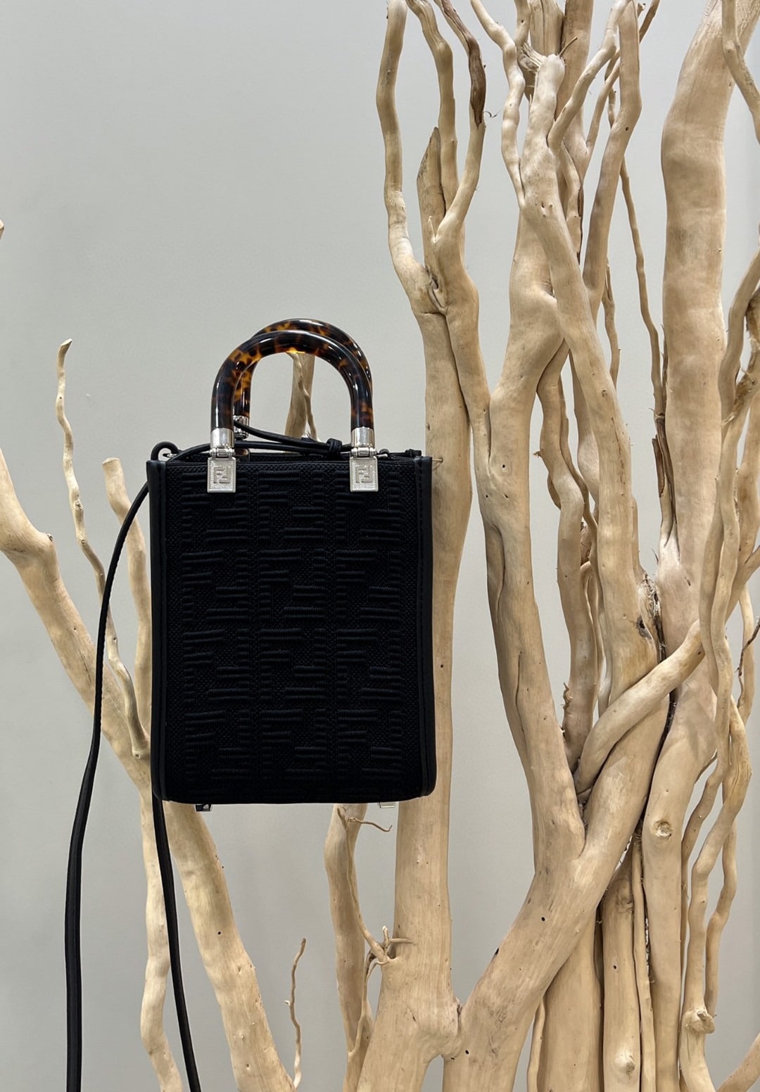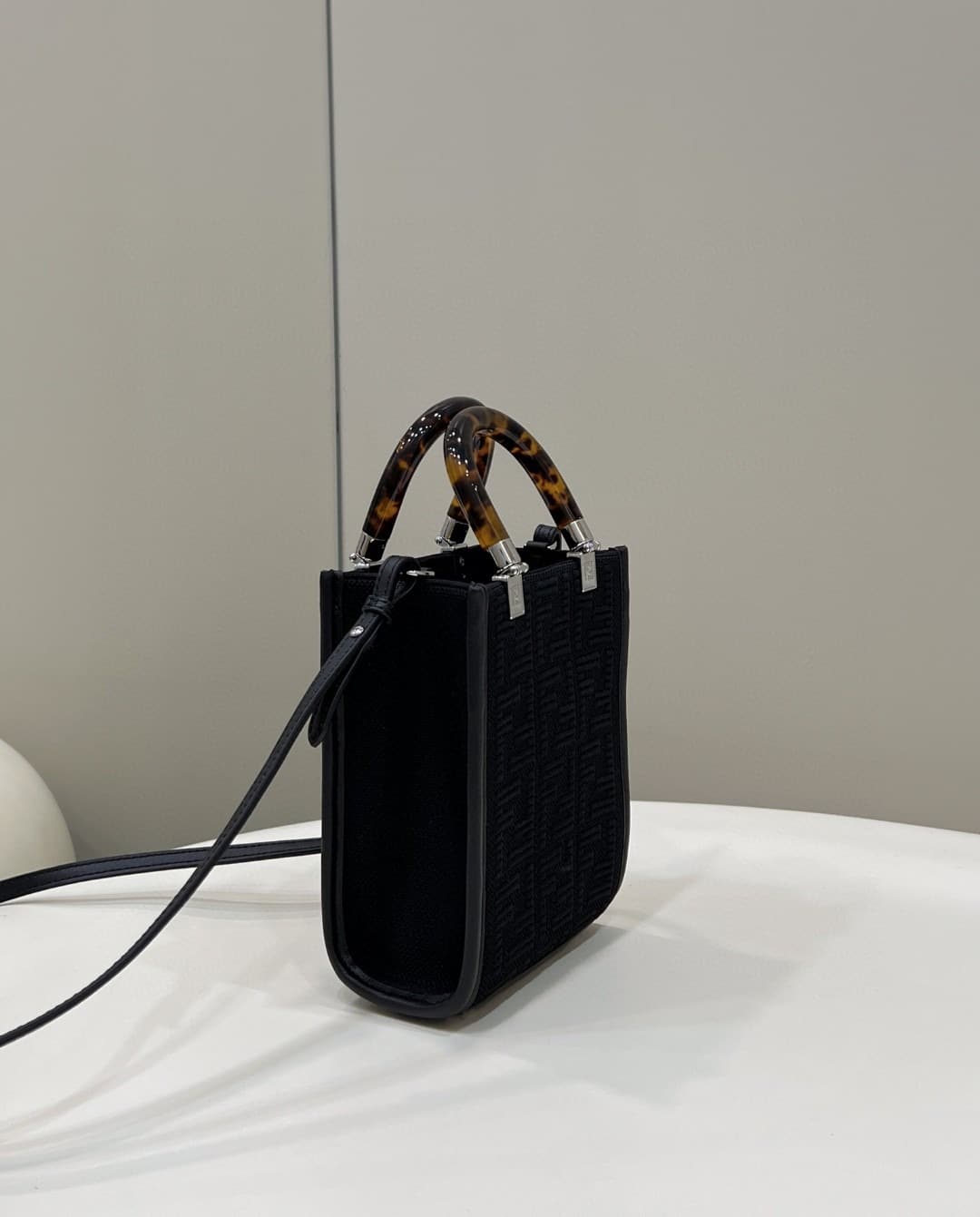 Fendi Mini Sunshine Shopper Black Bag For Woman 18cm/7in
