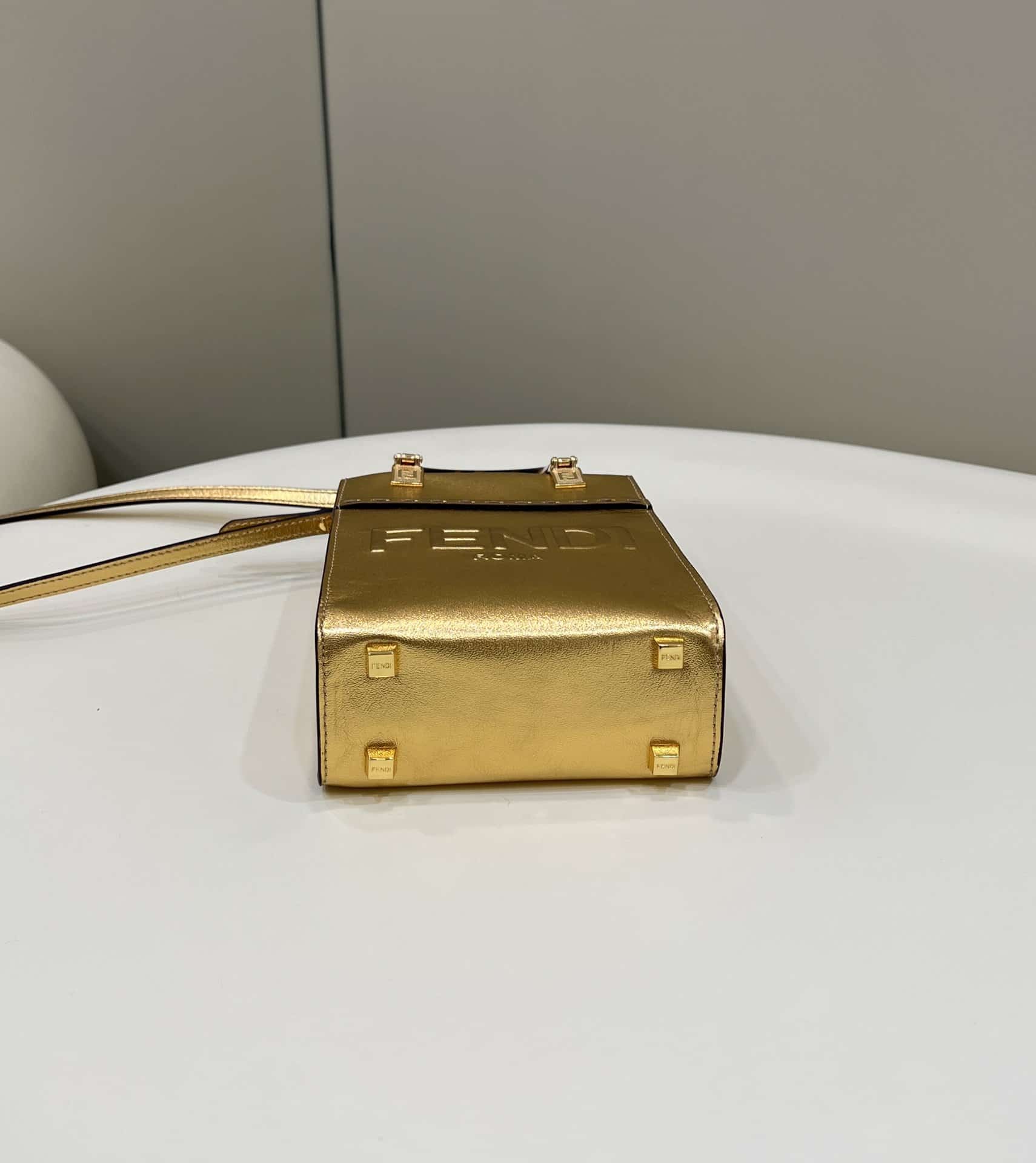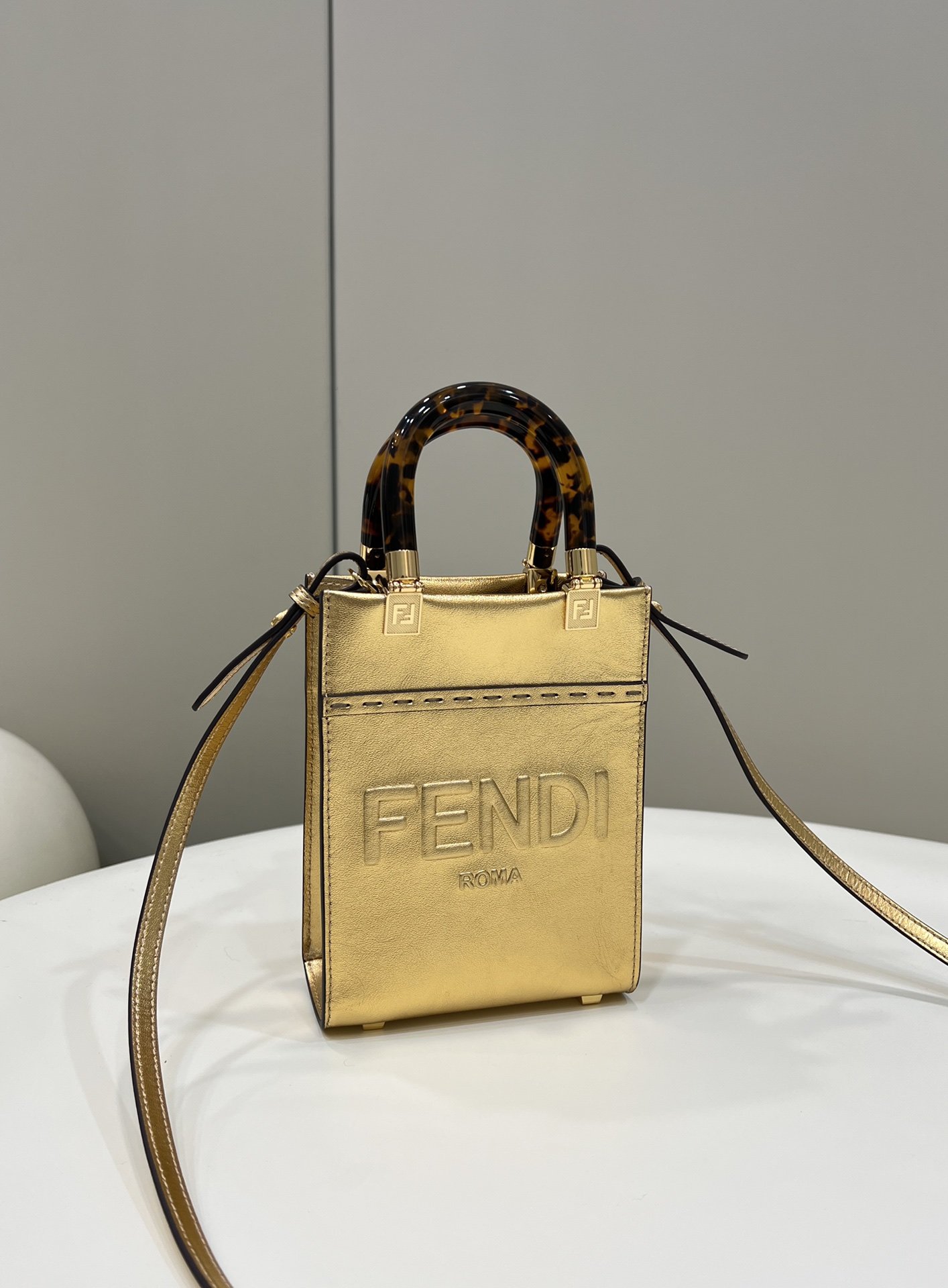Fendi Mini Sunshine Shopper Gold For Women, Women’s Handbags, Shoulder And Crossbody Bags 7.1in/18cm FF 8BS051AJH7F1GNN
