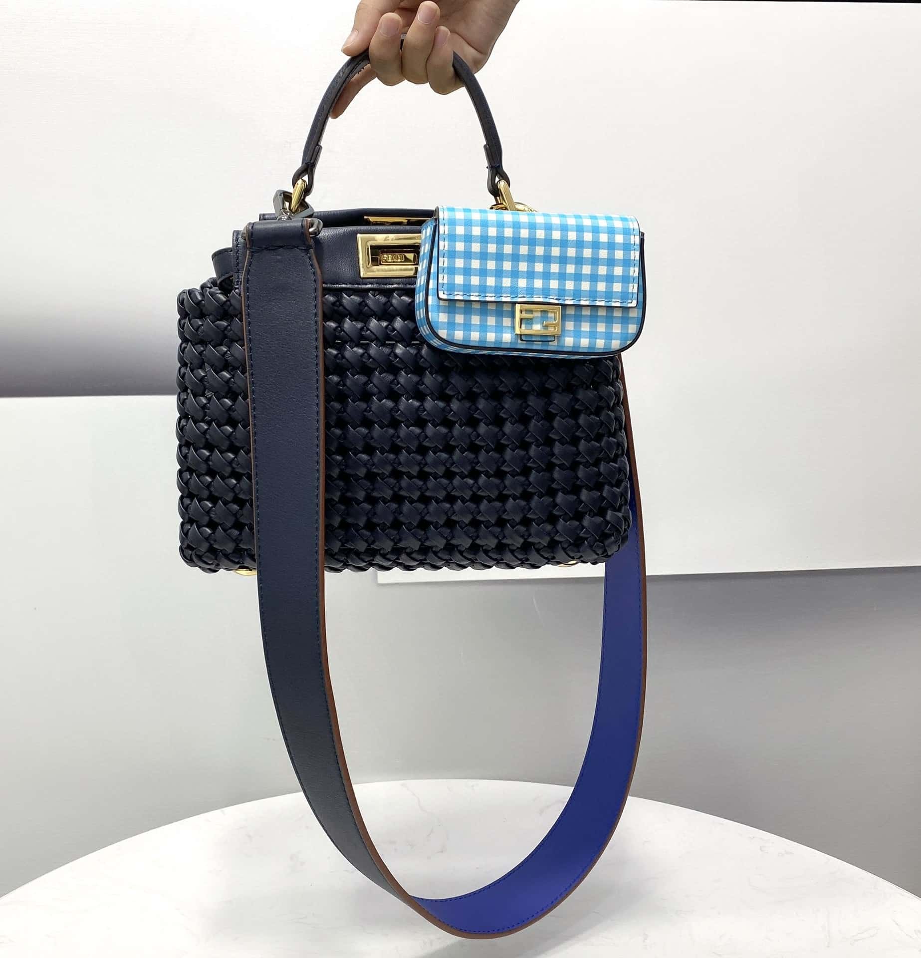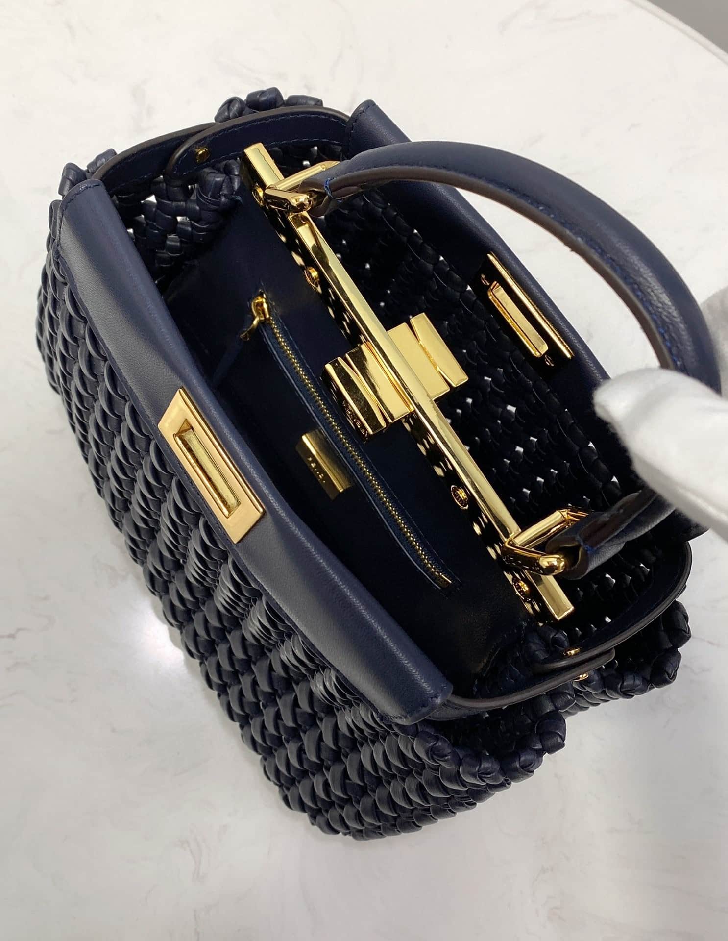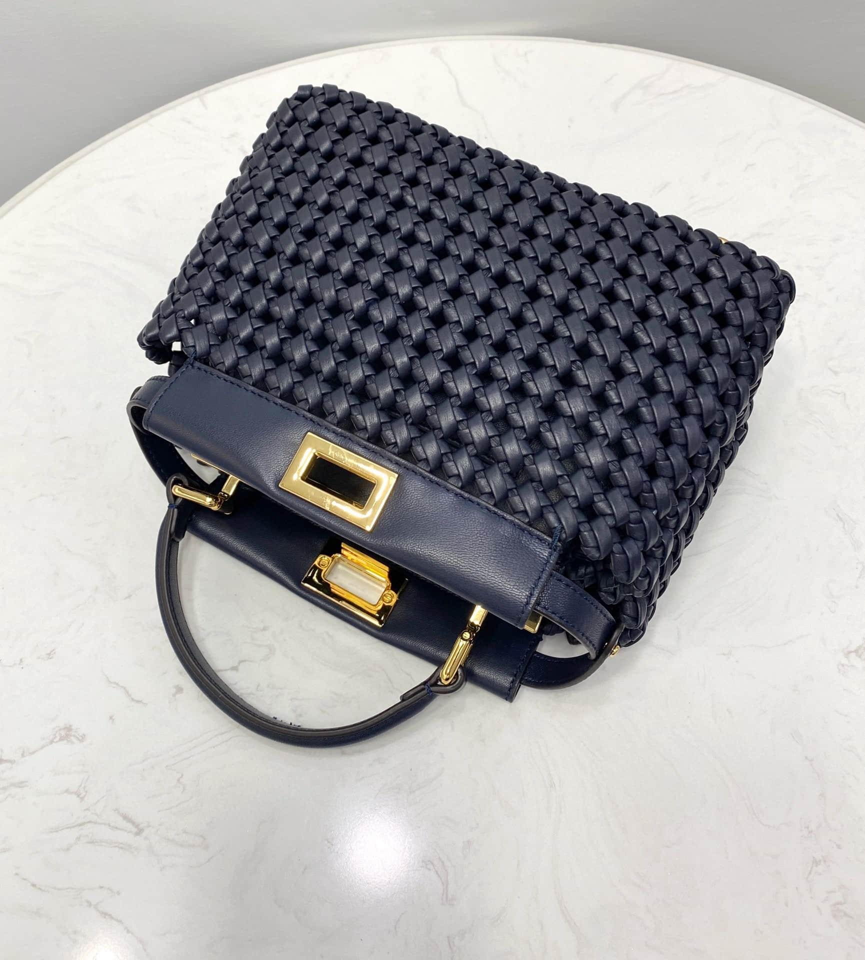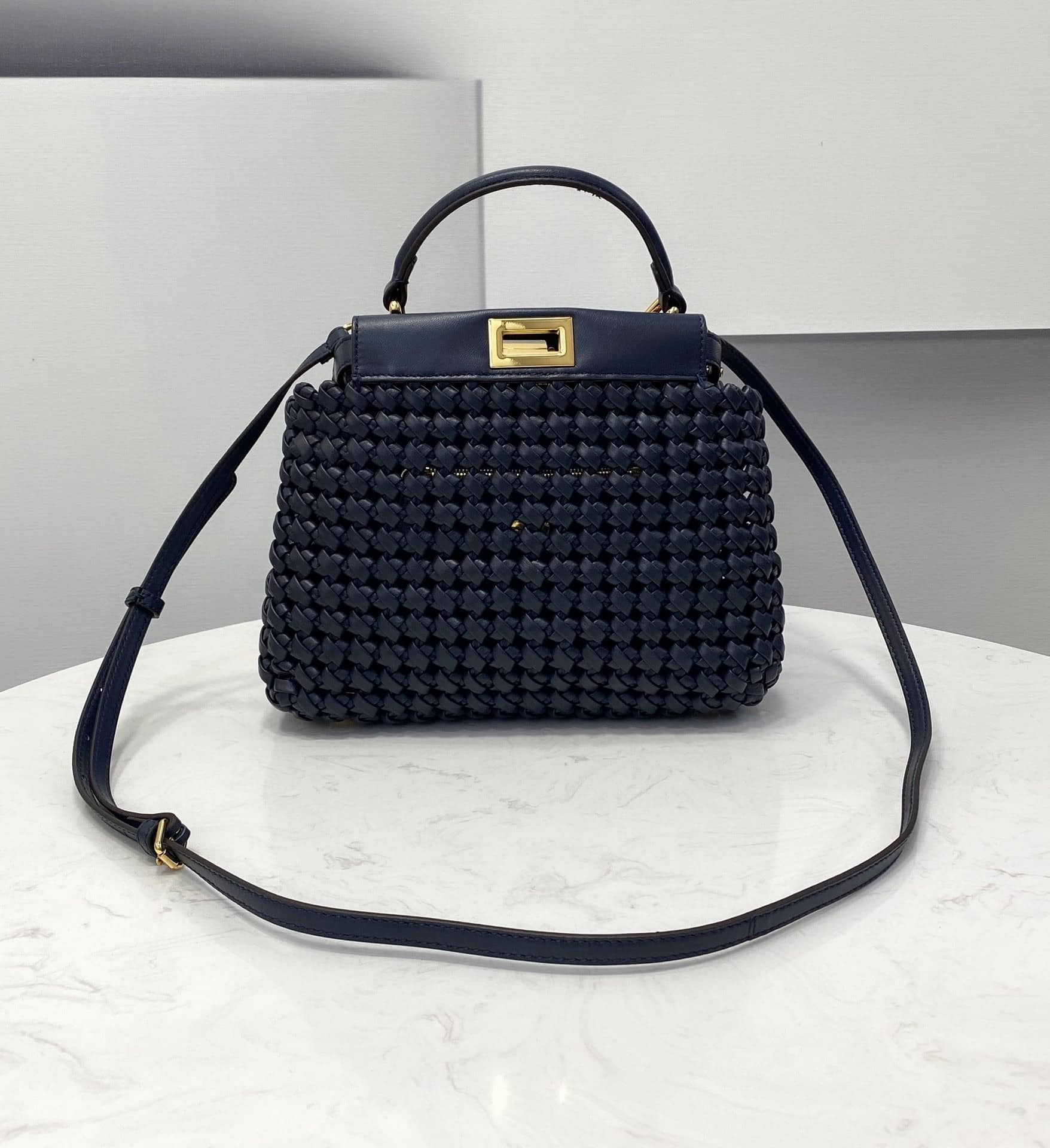 Fendi Peekaboo Mini Navy Blue Braided Bag For Woman 18cm/7in