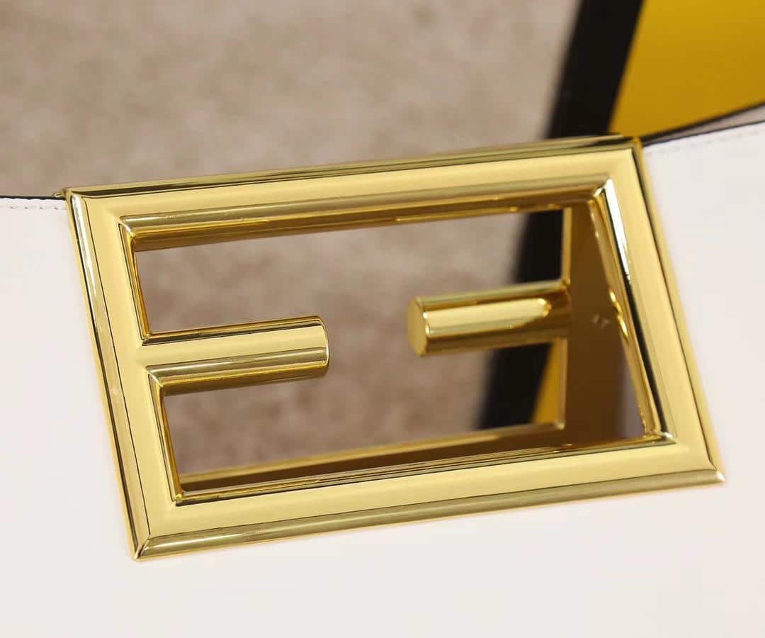 Medium Fendi Way bag made of white leather with oversize FF logo metal handles.