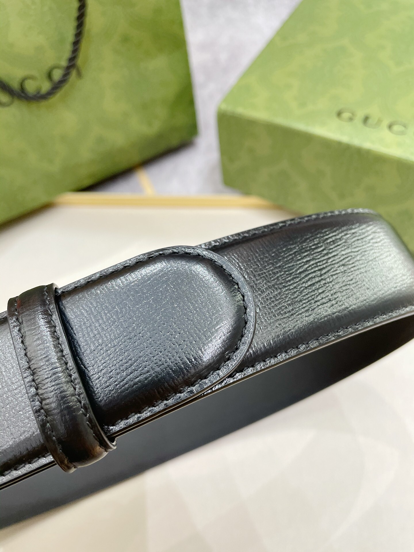 1:1 Replica Gucci Belt With Interlocking G Buckle Black For Women, Women Belt