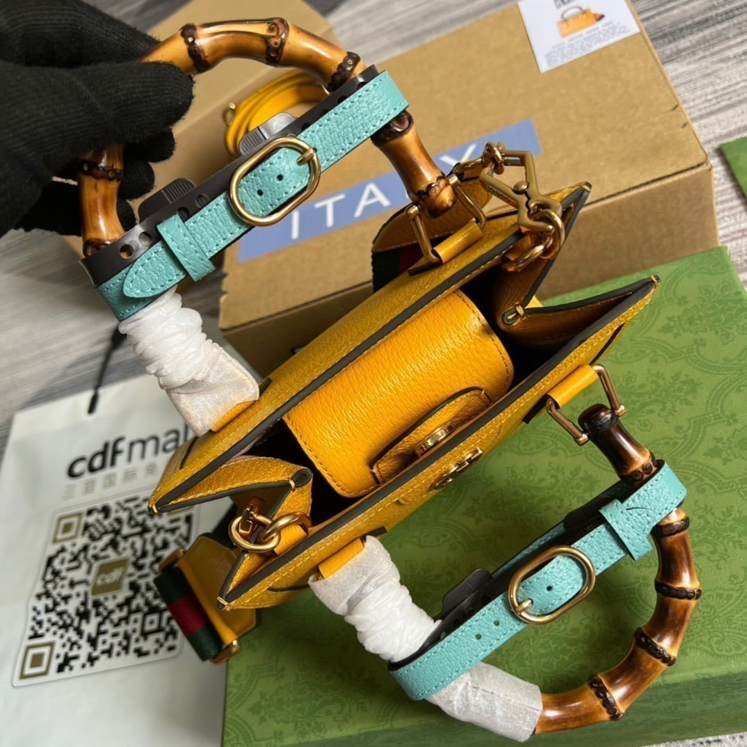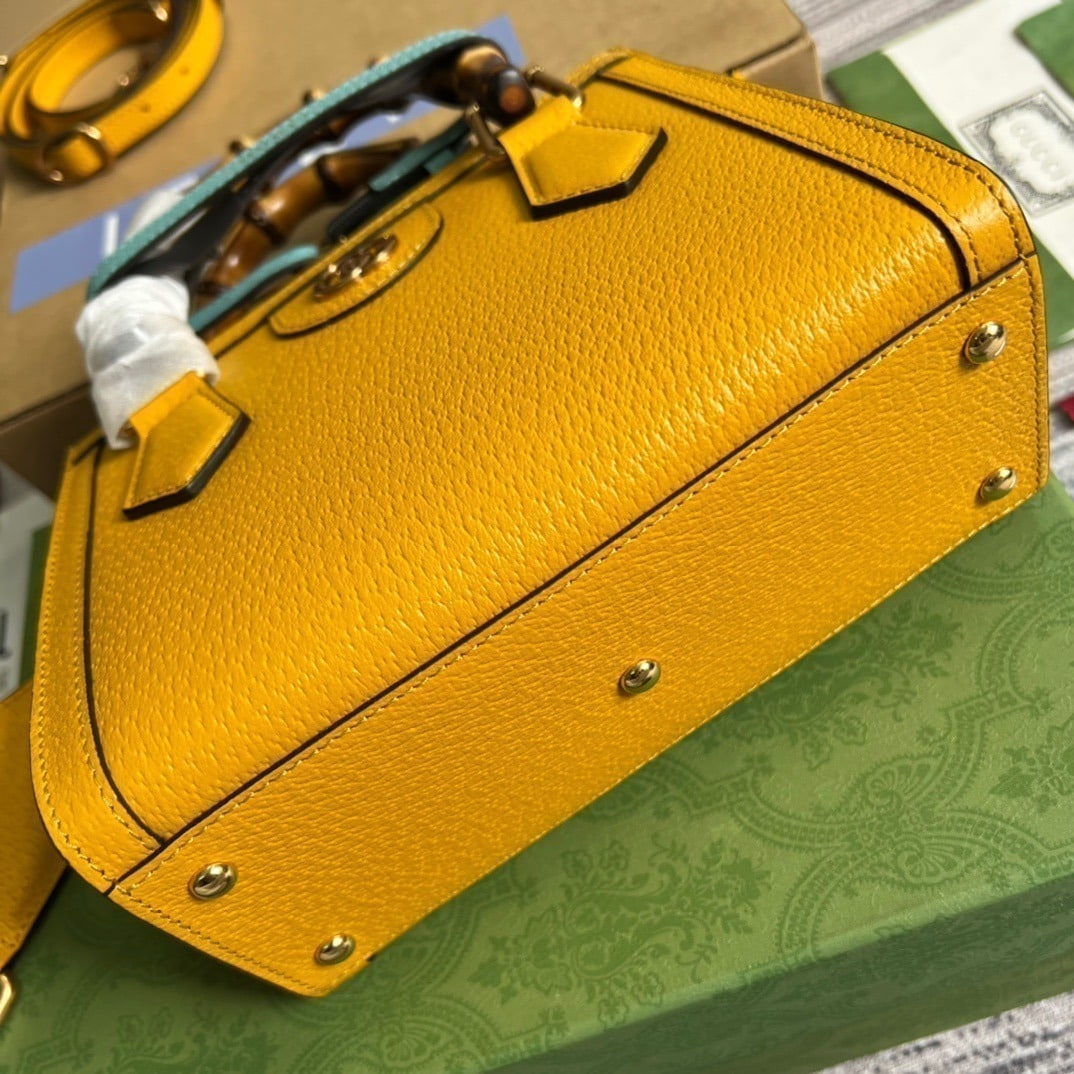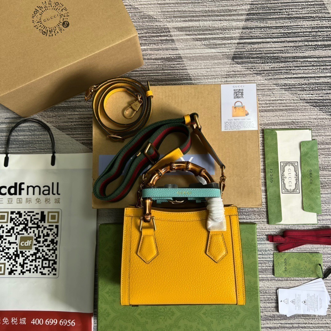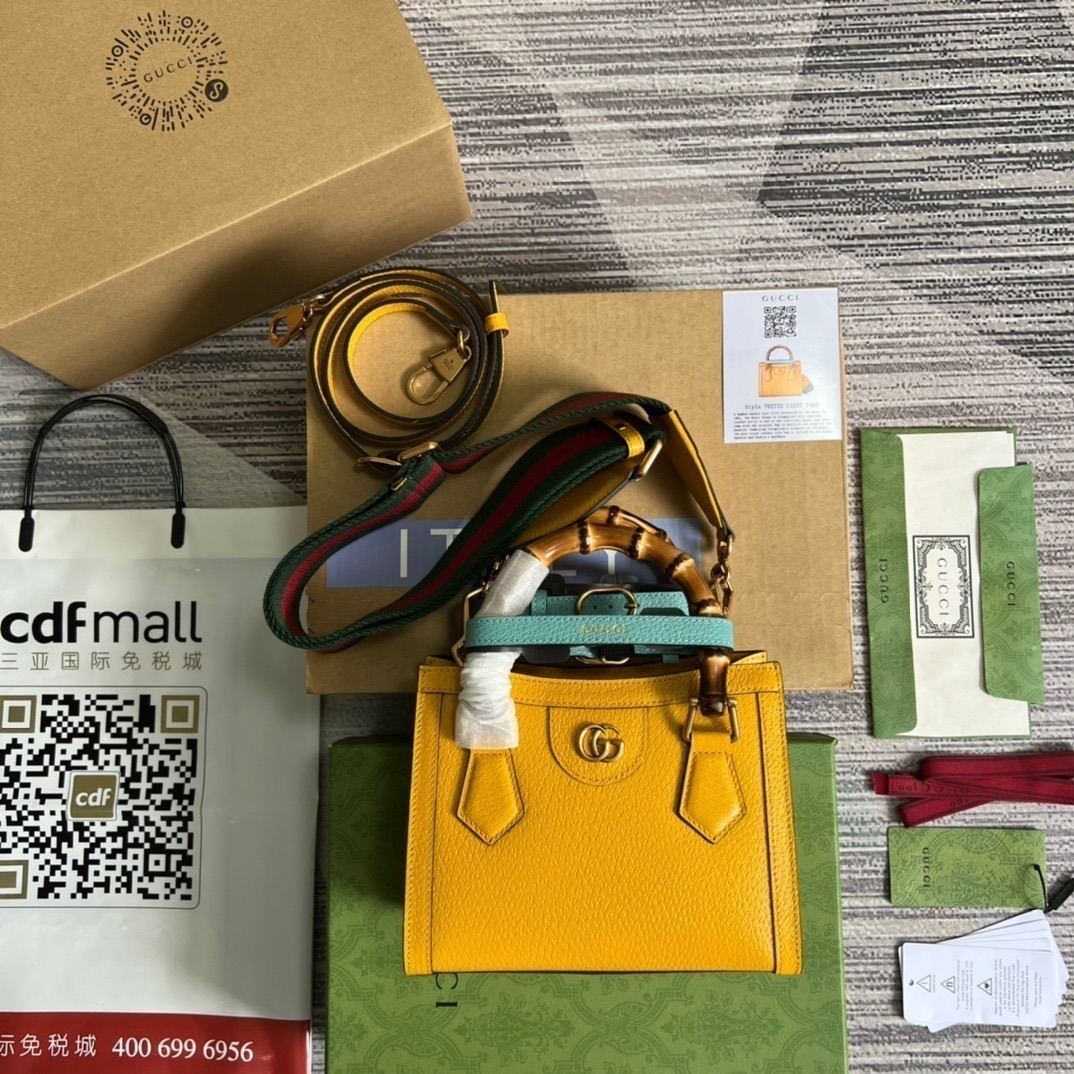 Gucci Diana Mini Tote Bag Yellow For Women, Women’s Bags 7.9in/20cm GG 702732 U3ZDT 7480