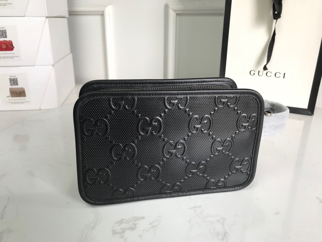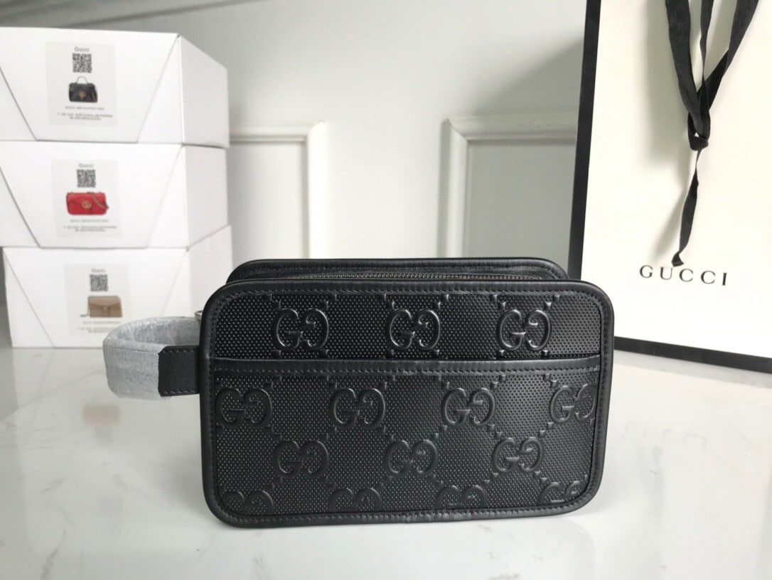 Gucci GG Embossed Cosmetic Case Black GG Embossed For Men  9in/23cm GG