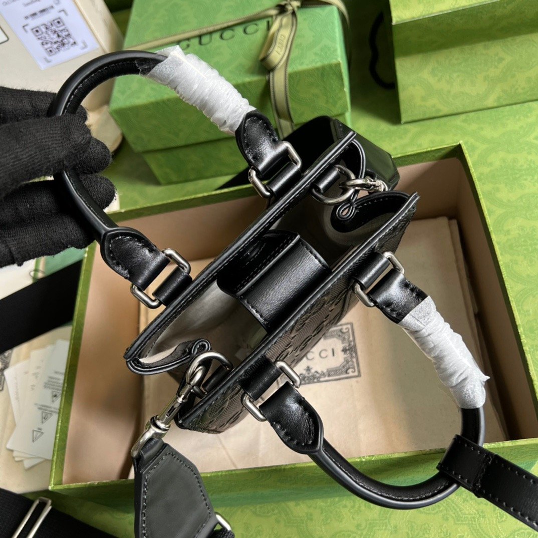 Gucci GG Embossed Mini Tote Bag Black GG Embossed For Men 7.9in/20cm GG 696010 1W3CN 1000