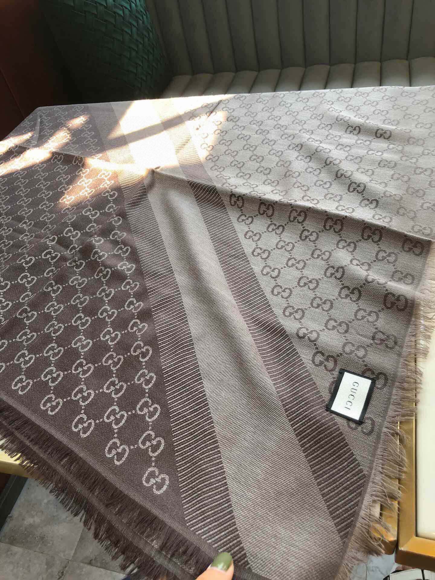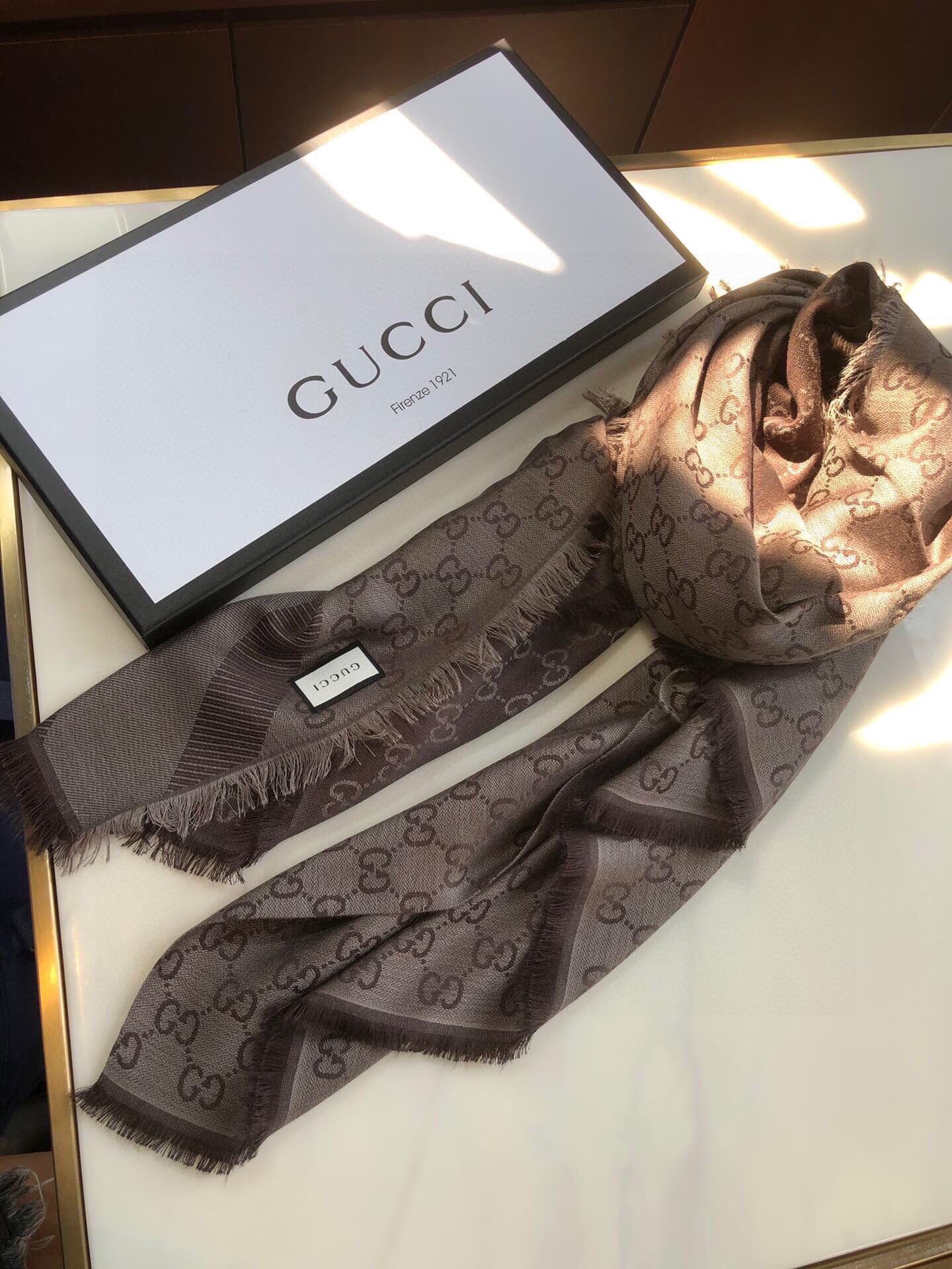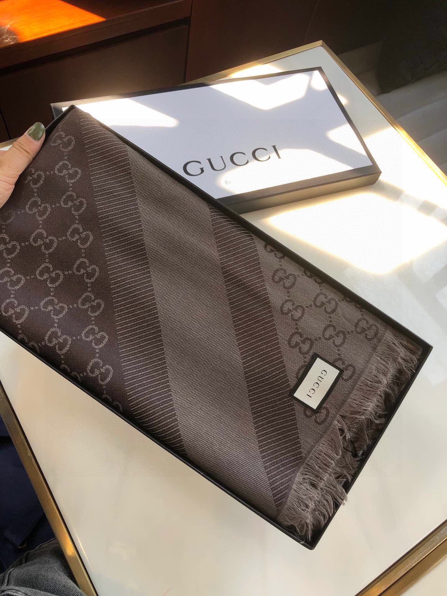 Gucci GG Jacquard Silk Wool Shawl Grey/Brown 55in/140cm